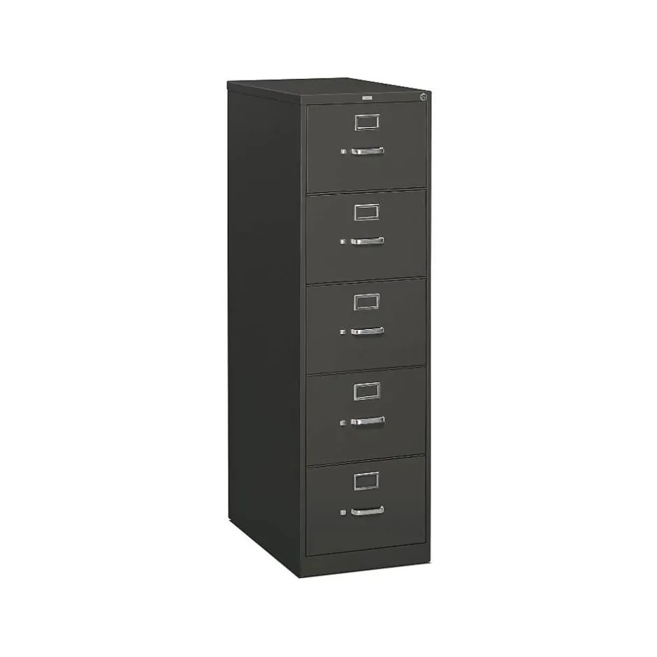 HON® 310 Series vertical file cabinet in charcoal color measuring 60″ x 18 1/4″ x 26 1/2″ features five drawers to offer extra storage space for file folders. Cabinet has a tilt and slide follower block in each drawer keeping files upright and neat.