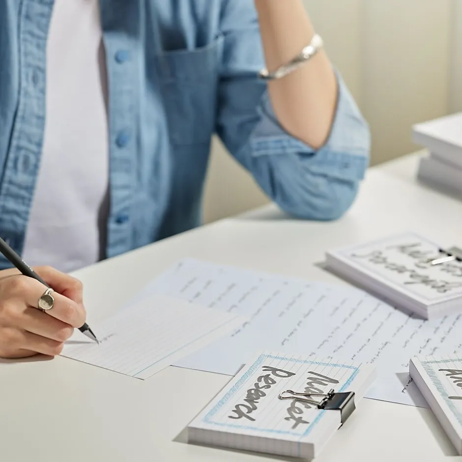 - Take notes, record recipes, or keep track of large projects with index cards