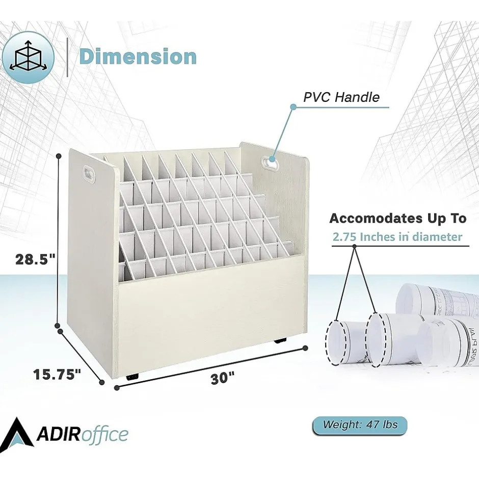- AdirOffice Mobile Wood Blueprint Roll File is offered in tube slot option with 50 compartments to suit everyone’s storage needs