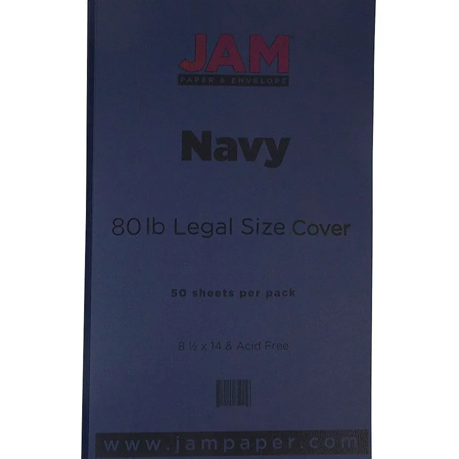 Dark and inky, this navy blue JAM PaperĀ® Premium Legal Paper Cardstock is perfect to fit all of your special paper needs. From invitations, business mailings, and promotional flyers to arts and crafts, letters, and cards, this cardstock will surely deliver. The navy color is dark and sultry, with a sleek smooth finish. It may be dark, but it provides a great way to experiment with cool metallic markers and pens. This cardstock is made of 80lb paper, so it is study and won’t be bending or ripping with ease. It measures 8.5 x 14 inches so it is a legal size. This cardstock is sold in packs of 50.