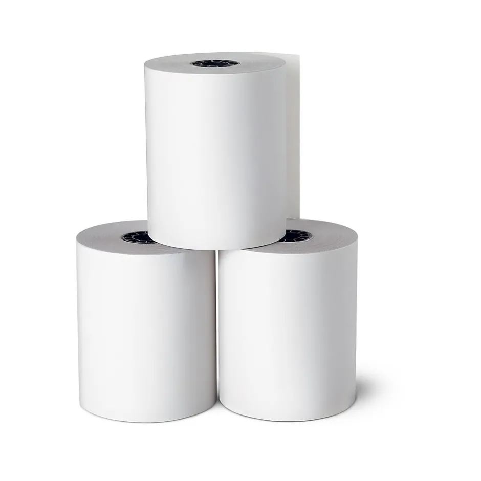 Install these one-ply SC financial rolls in select printers to eliminate downtime. Each roll is 140 feet long, so it can print a lot of receipts before needing to be replaced, while the bright white paper construction produces sharp images and text that has high contrast, making prints easily readable. These Staples SC financial rolls come in a pack of 50 units, so staying stocked is simple.