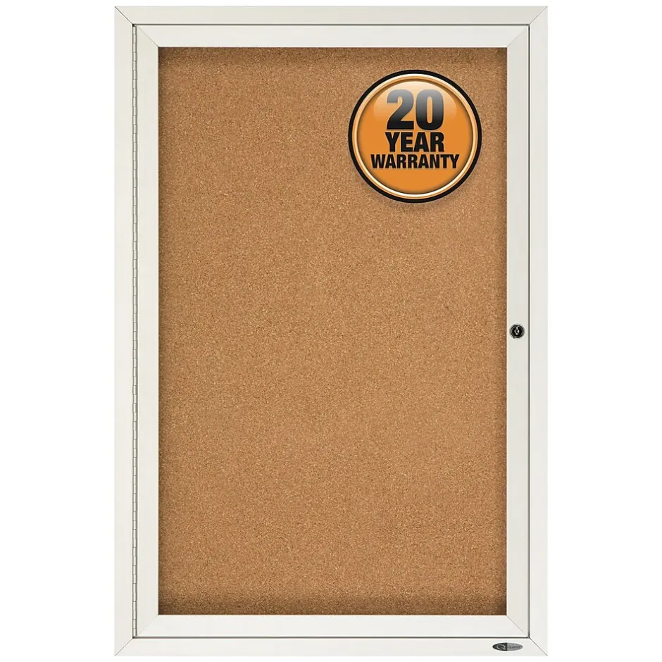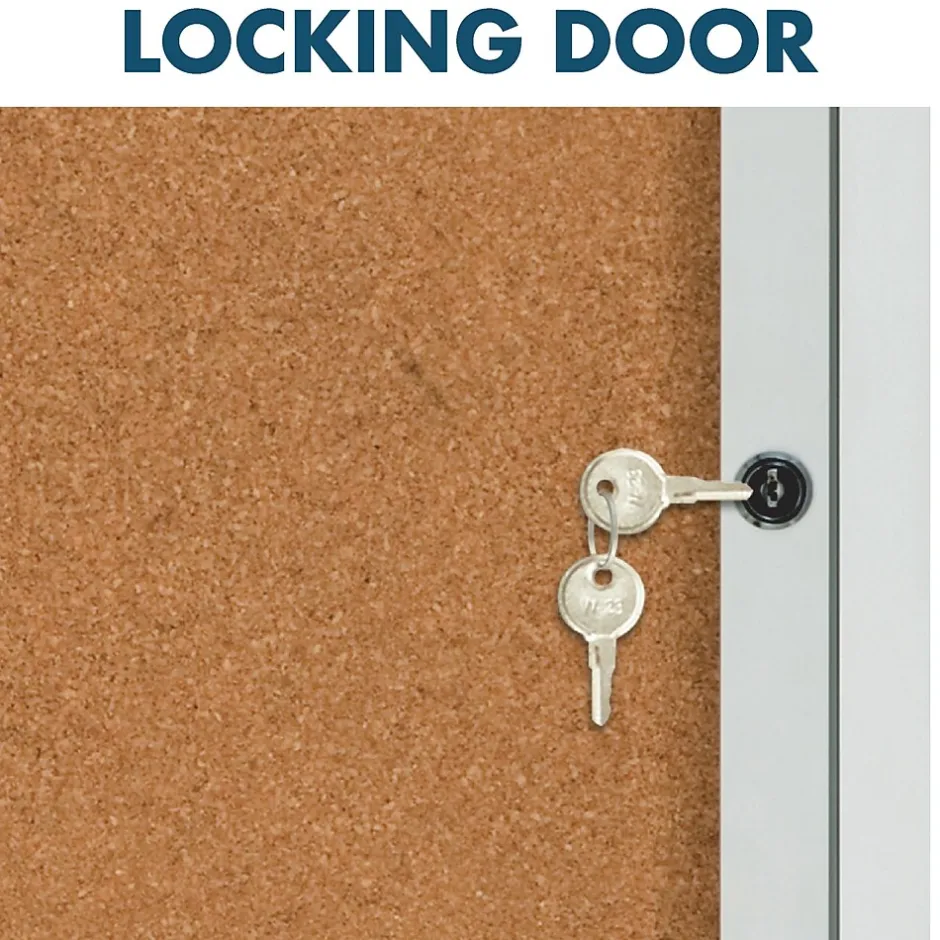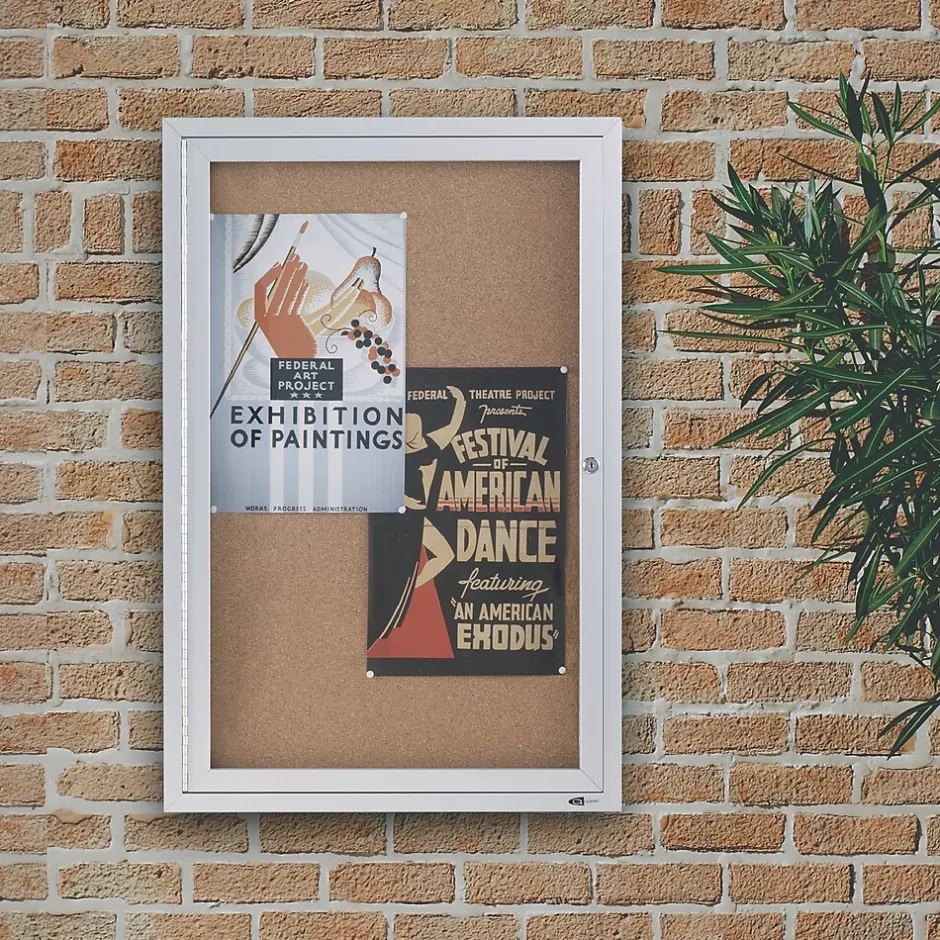 Protect notices and collages behind shatterproof tempered glass by using this enclosed cork board. The natural cork on this locking board is self-healing, so it stands up to heavy use with pins and tacks. At 2 by 3 feet, this Quartet enclosed bulletin board can display several large documents for high visibility in cafeterias, break rooms, warehouses, and offices.