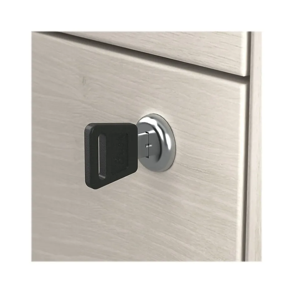 The Bush Furniture Homestead farmhouse-style lateral file cabinet offers a practical storage solution with an appealing modern farmhouse style. This filing cabinet utilizes Tip Guard safety features that include a stable design, a counterweighted back panel, wall attachment hardware, and safe-open drawers. Locking file cabinet’s drawers pull out one at a time for safe use and each support up to 50 lbs. Full-extension ball bearing slides provide easy-reach access to the letter-, legal-, and A4-size paperwork. A single lock secures both drawers for your privacy. Decorative trestle patterns, chamfered profile edges, and antique silver hardware give this cabinet a casual farmhouse style. This file cabinet has been tested to meet the ANSI/SOHO quality standards for safety and performance and is backed by a 1-year limited warranty. See the complete Homestead collection for more items.