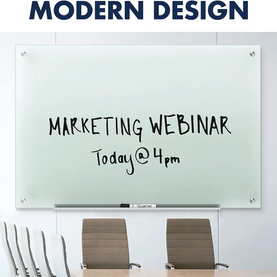Invite employees to share ideas and concepts on this Quartet glass marker board. Its large surface of 8 x 4 feet makes this board ideal for use in conference rooms or open-office layouts, and the frosted texture creates a striking contrast for black or color markers.