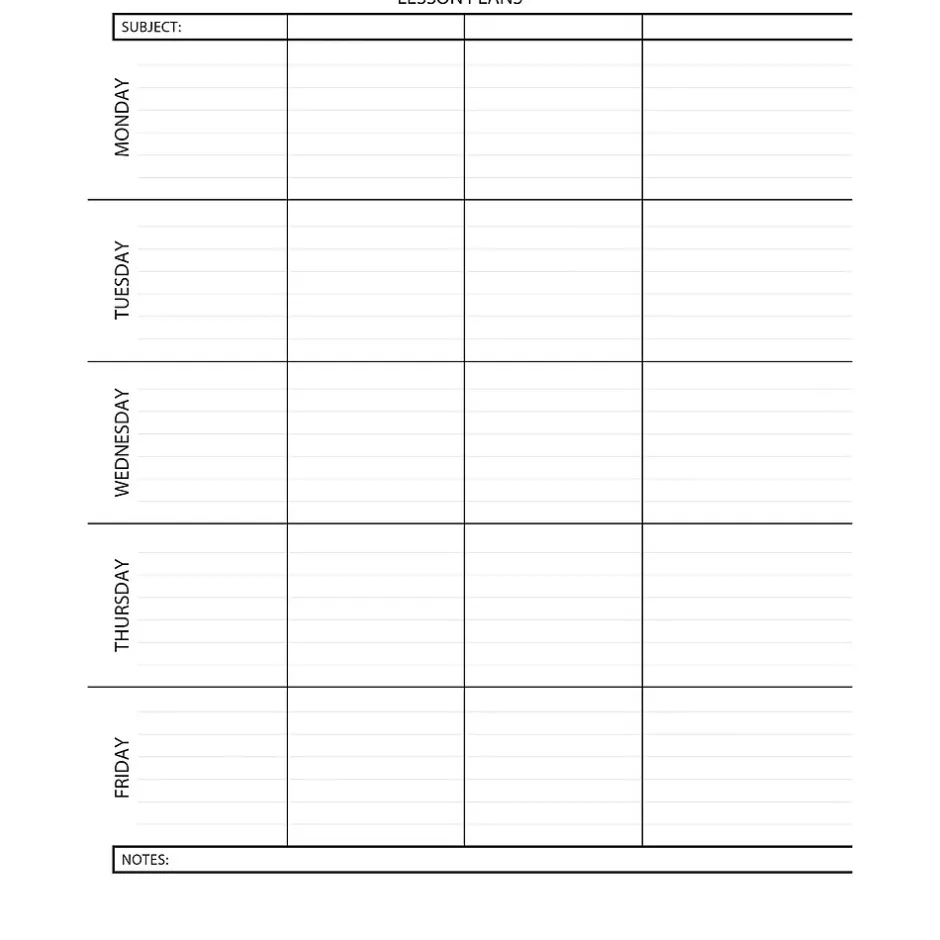 - Weekly lesson planner for 8 class periods for up to 41 weeks with extra pages for changes