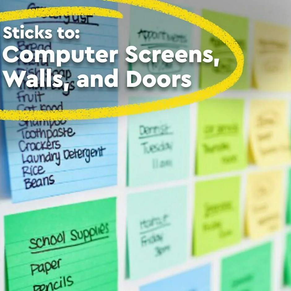 - STICK AND RESTICK ANYWHERE: These notes use water-based adhesive to stick firmly to walls, windows, doors, and other vertical surfaces, allowing you to move your reminders with ease