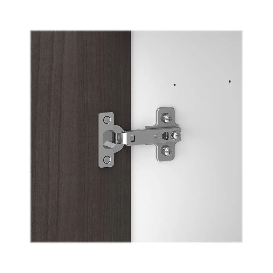 - Comes in storm gray and white and made of laminate over engineered wood