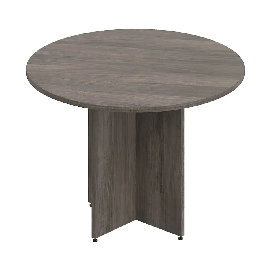 This contemporary Offices to go 42″ round desk with cross base comes in artisan gray color. Its form and laminated surface are perfect for writing or using your laptop and great for home or offices. All Superior laminate desking products are in compliance with stringent emission guidelines set out by the GREENGUARD Environmental Institute under the standards for low-emitting products and materials.