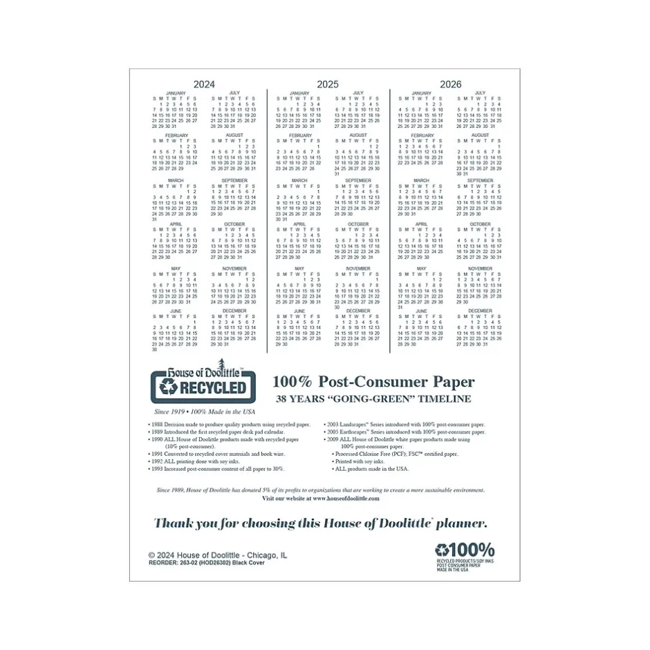 Just plan with this 2024-2025 House of Doolittle 8.5″ x 11″ academic monthly planner. Each two-page spread features a monthly view with 1.75″ x 1.75″ blocks allocated for each day, as well as previous and next month reference calendars. The planner features an additional page with a list of important holiday dates for 3 years. Use the 3-year reference calendar page for long-range planning. Monthly note space helps you stay organized.