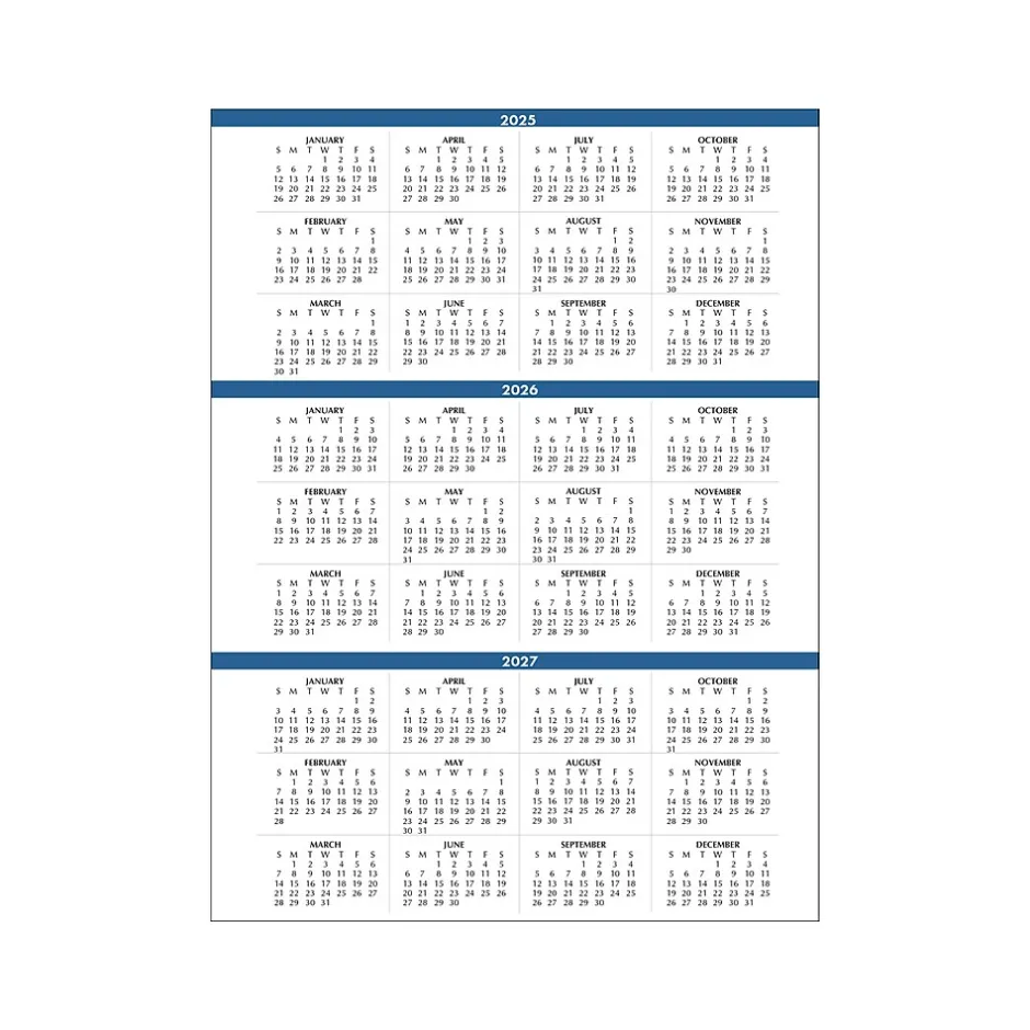 - Weekly and monthly planner covers a 12-month range from January 2025 to December 2025