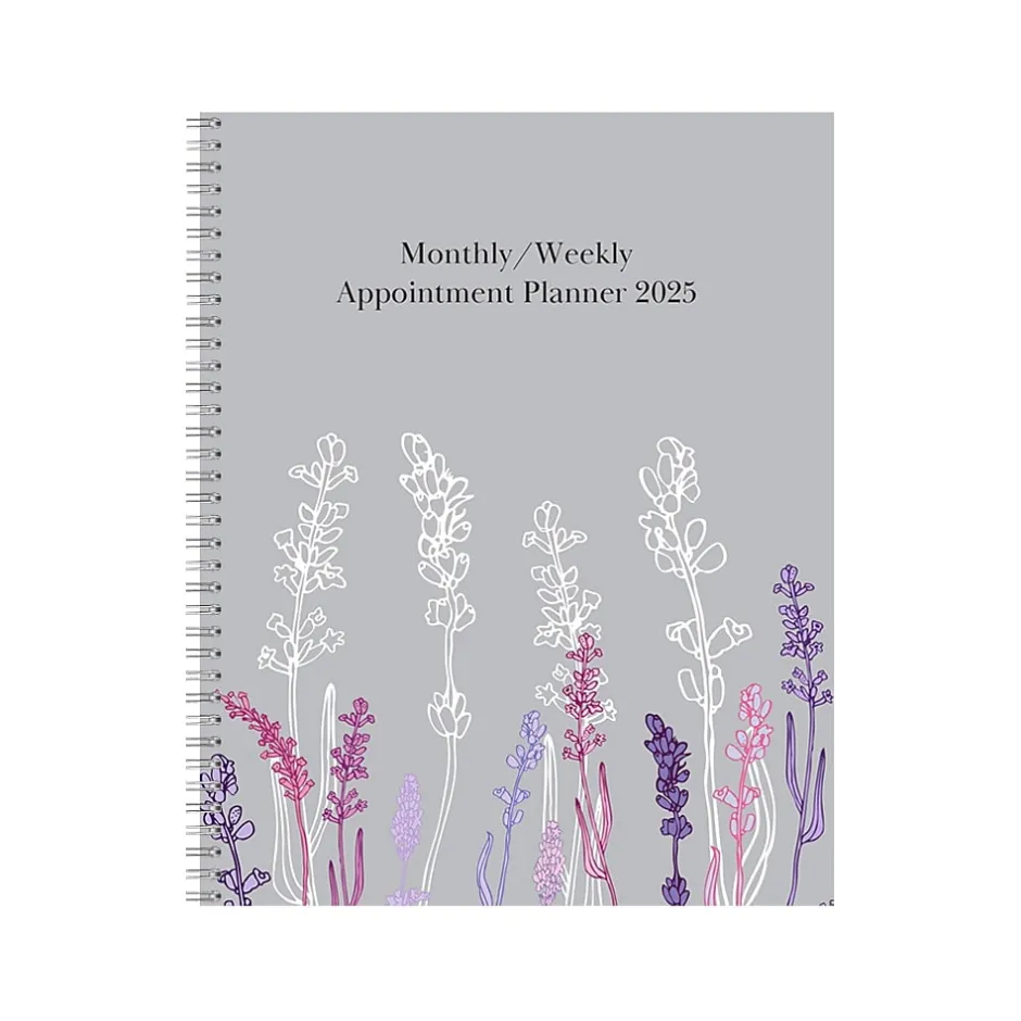 The House of Doolittle Wild Flower weekly and monthly planner offers 12 months of uninterrupted easy planning, from January 2025 through December 2025. Both monthly and weekly two-page spreads feature an area for notes to keep you organized and motivated. Plus, they include Julian dates and days remaining. Each monthly two-page spread features a tab for easy reference and also allows you to see important dates and reminders. The weekly spreads feature open slots for appointments for all seven days. The planner is spiral-bound with 90% recycled wire and features a durable two-piece cover made of 110 lb. stock that stands up to ongoing use throughout the year. Printed with soy-based inks on 100% postconsumer recycled paper. Made in the USA and is FSC certified.