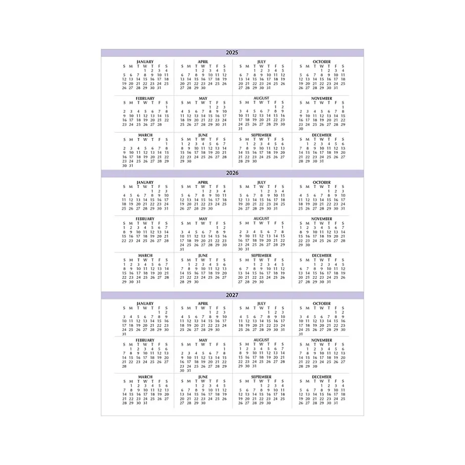 - Three-year calendar reference page for long-range planning