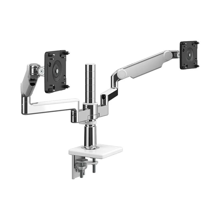 M/Flex’s modular design makes it simple to reconfigure and allows for independent adjustment of monitors when they are used separately — encouraging flexibility and collaboration at the workstation.By easily setting monitors at an optimal distance and height, M/Flex increases usable desk space and allows the user to work in a healthy posture throughout the day.
