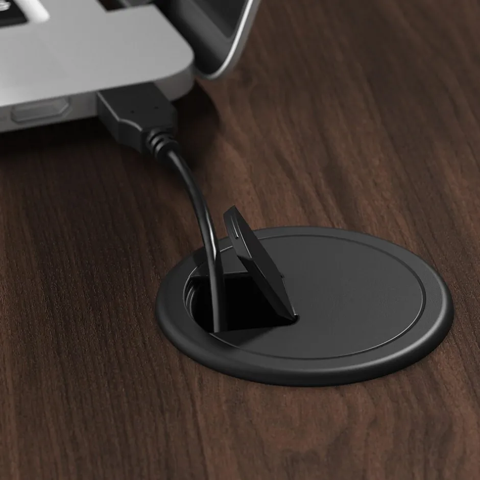 - Desktop includes three built-in wire management grommets to keep cords and cables out of the way