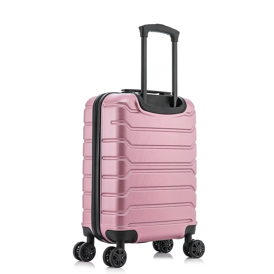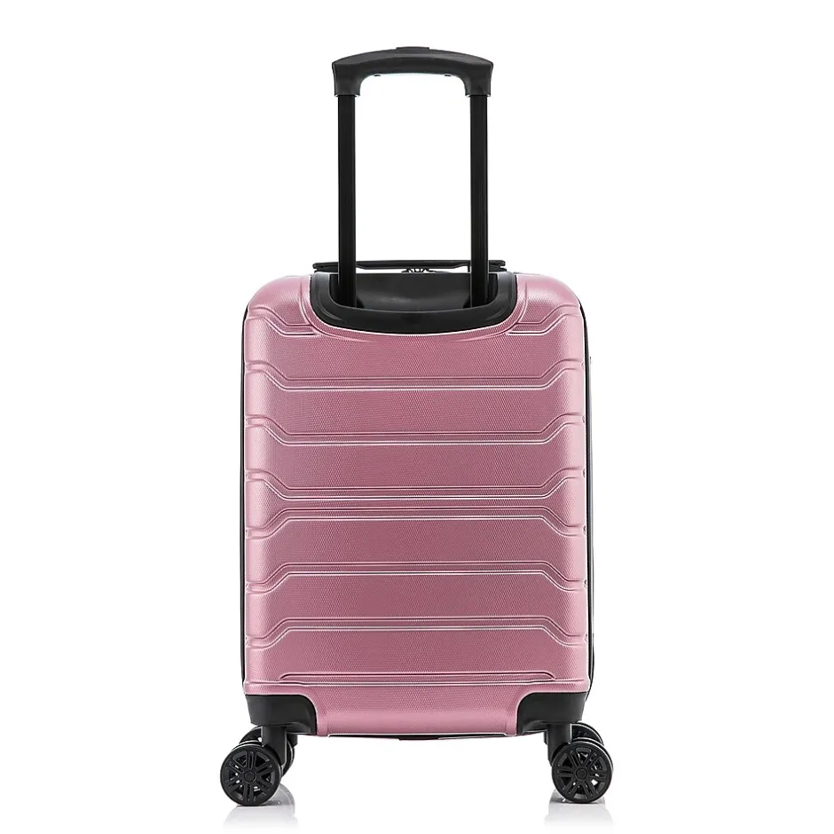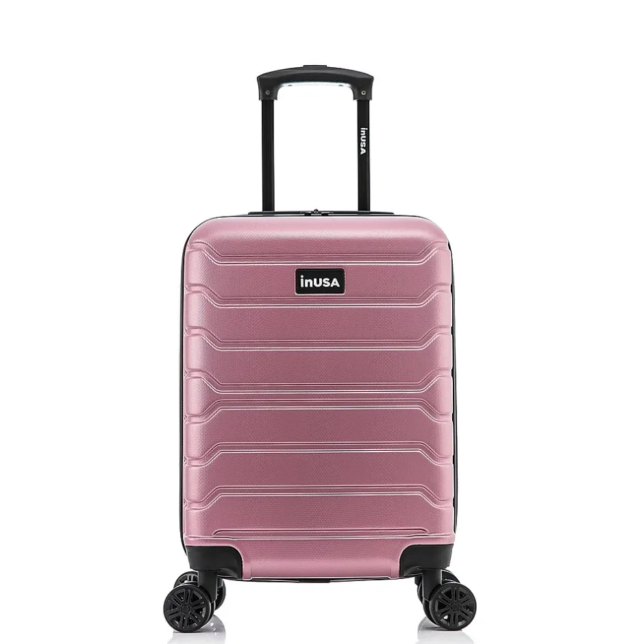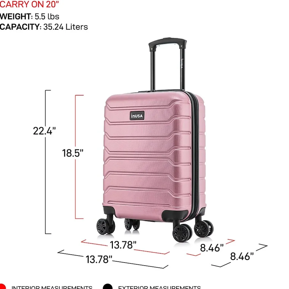 Improve your travel experience with this InUSA Trend carry-on spinner luggage. Made of lightweight PC/ABS engineered material with a brushed finish, this luggage features a push-button locking internal retractable trolley system and four dual 360-degree silent spinner wheels for smooth, effortless mobility. The hard-flex construction offers maximum strength, durability, and resistance to water and scratches. Four side studs let the luggage stand on its side, while the top and side ergonomic gel handles provide comfortable and easy lifting.