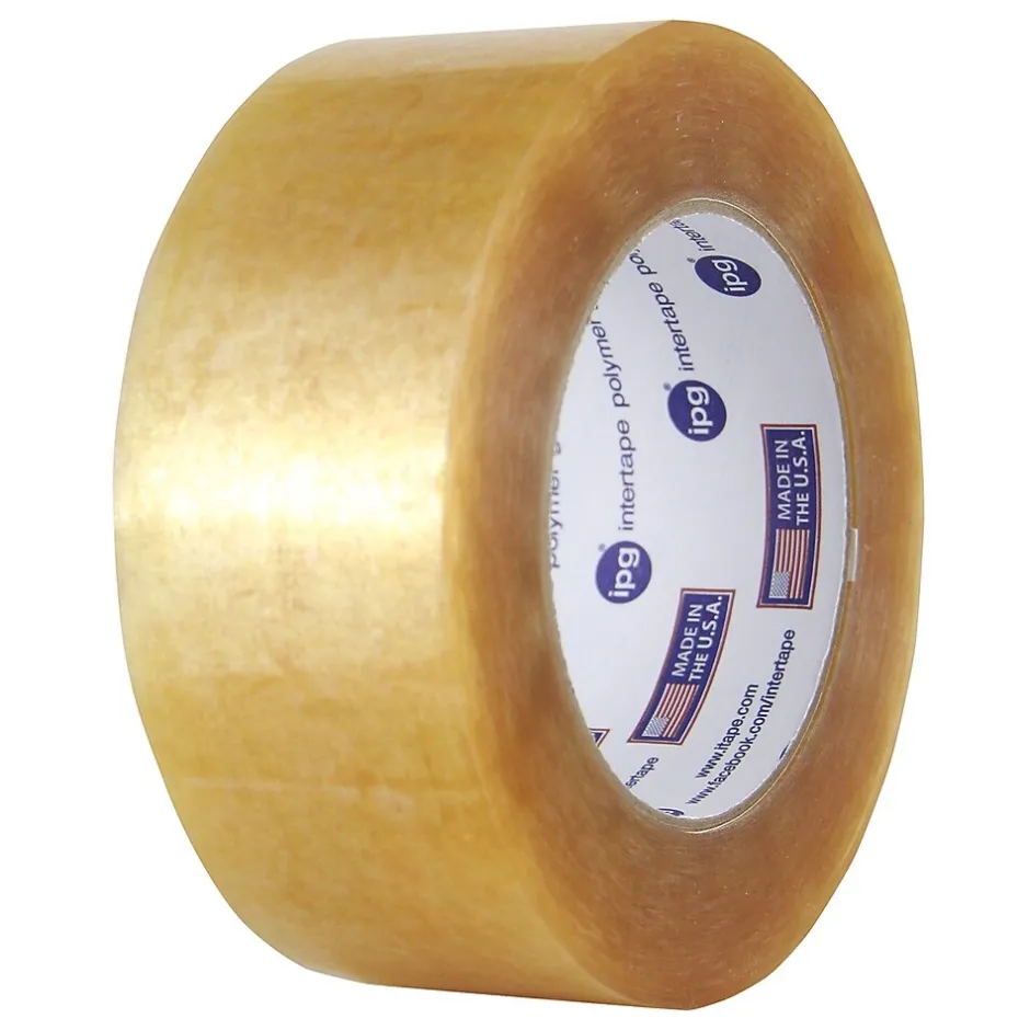 Secure items such as customer orders and other items with this packing tape. The maximum adhesive power withstands the most extreme weather conditions for reliable use, and the generous length makes it easy to stock your warehouse. This Intertape natural rubber clear packing tape holds up in most environments, ensuring that packages arrive unblemished.