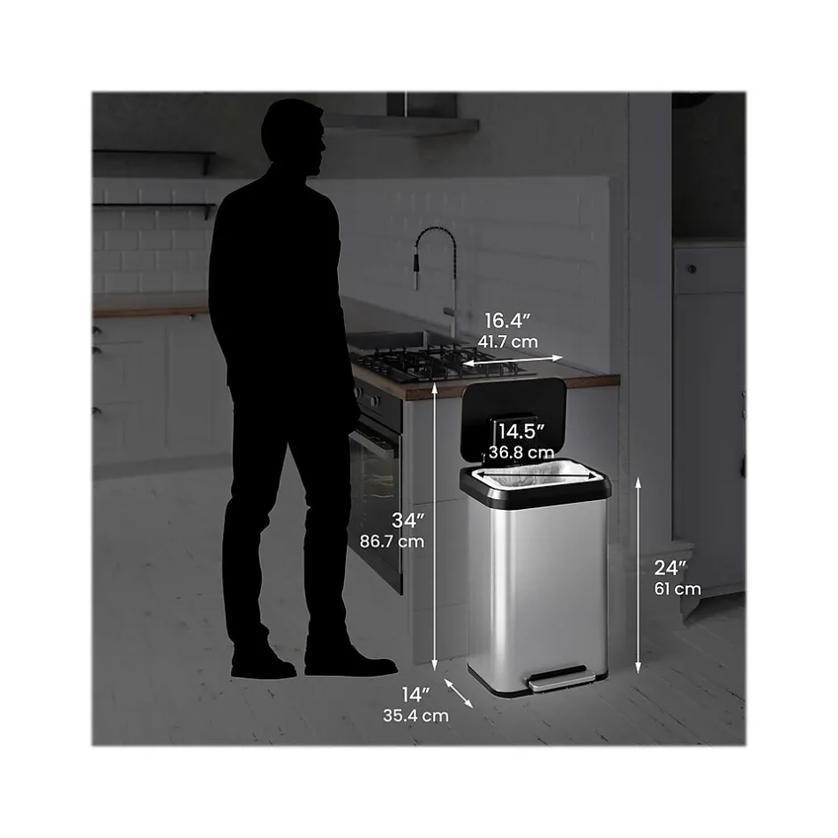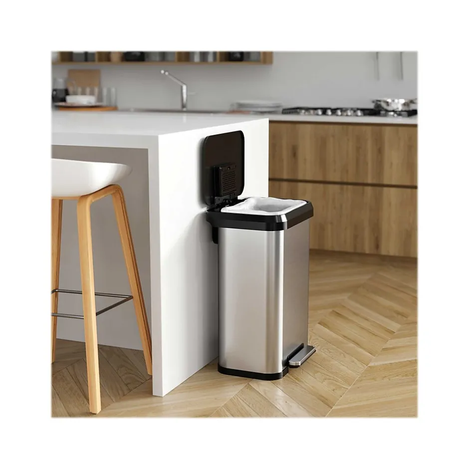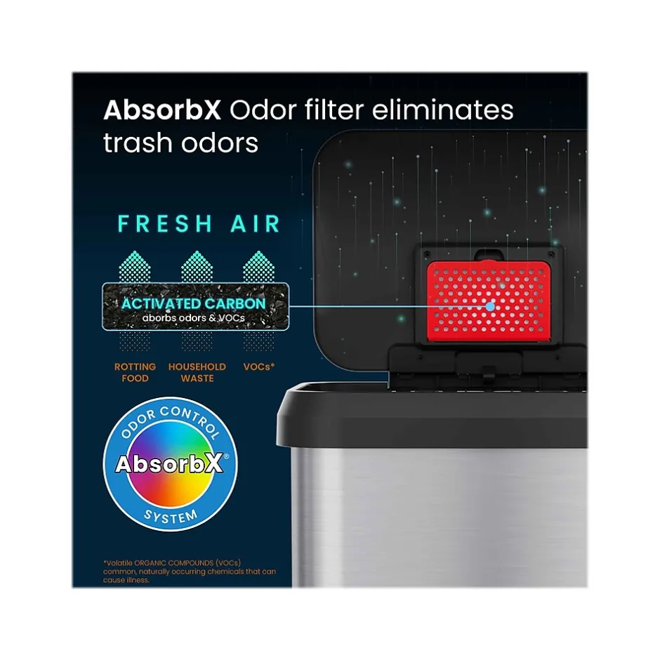 The iTouchless SoftStep EXP stainless steel step trash can is a great addition to any home. This bin has everything you’d want in a kitchen trash can: a durable, dent-proof plastic lid, an elegant brushed stainless steel body, an AbsorbX odor filter, and more.