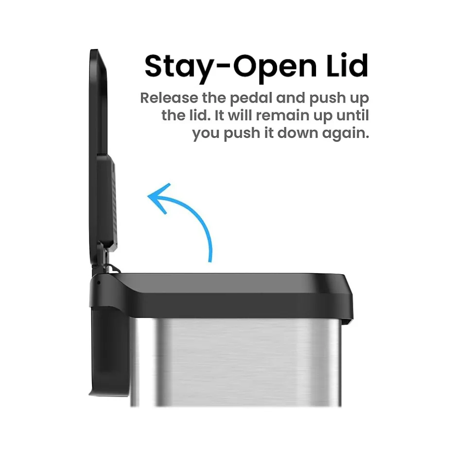 - Step trash can ensures clean and litter-free space and provides hands-free operation