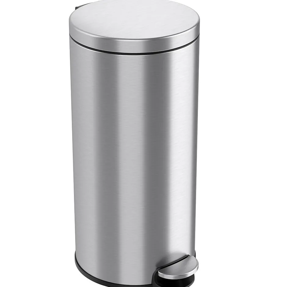 This iTouchless SoftStep trash can features a versatile round shape and space-saving design that make it perfect for the kitchen. The can is made of elegant fingerprint-proof stainless steel and comes with an AbsorbX natural carbon odor filter.