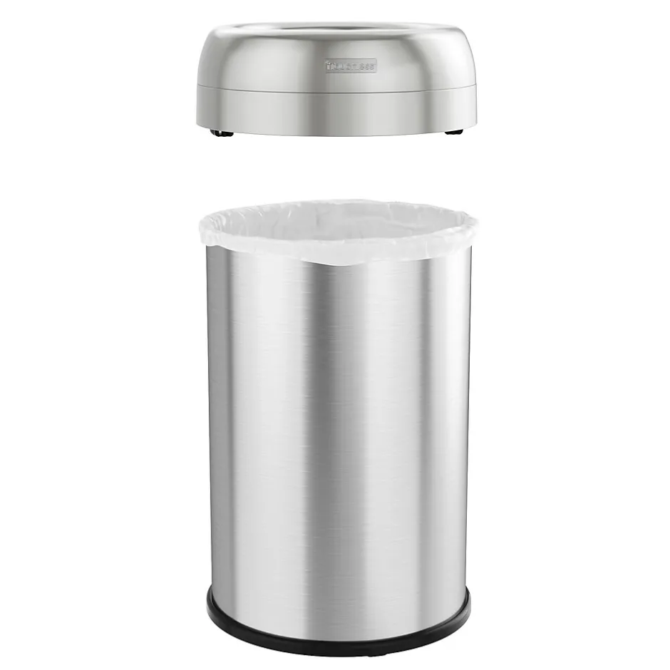 Featuring two powerful deodorizers, the iTouchless round 13 Gal 49 L stainless steel trash can with an open top is the easiest way to dispose of trash quickly, yet enjoy fresh and clean smelling surroundings. Whether you need a waste receptacle for residential for commercial use, this large capacity, stainless steel trash can is the perfect solution for quick, on-the-go disposals. The dual-deodorizers ensure that trash odors stay inside the can.
