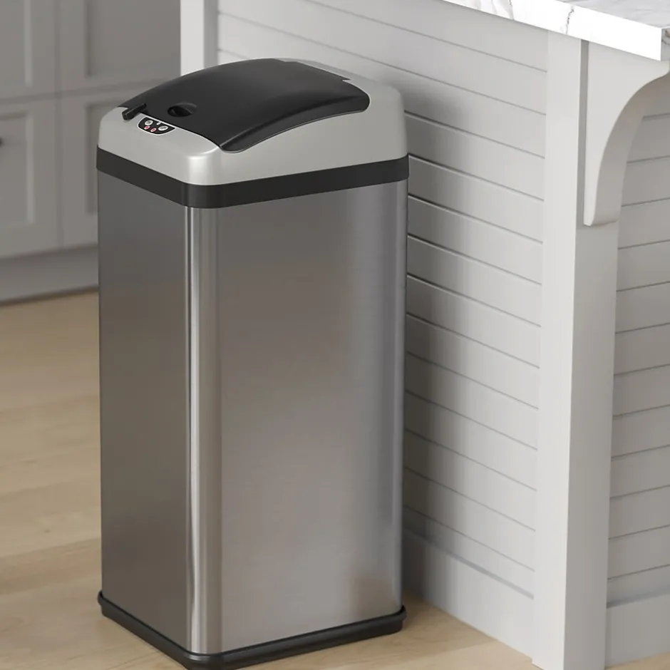 - Touchless, sensor-activated lid