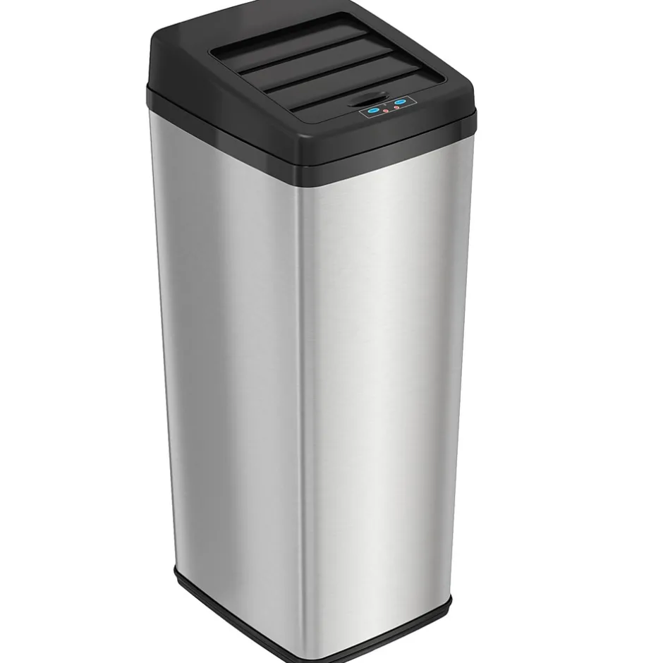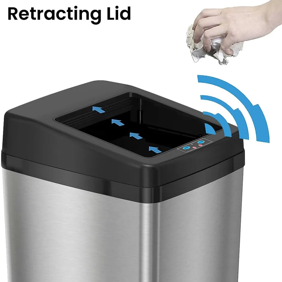 | Capacity in Gallons Trash can or recycling bin features. For example: molded hand grips, wide rim, step on, touchless | 100% Touch-Free Sensor Operation,Battery-Free Operation With Optional Ac Adapter |