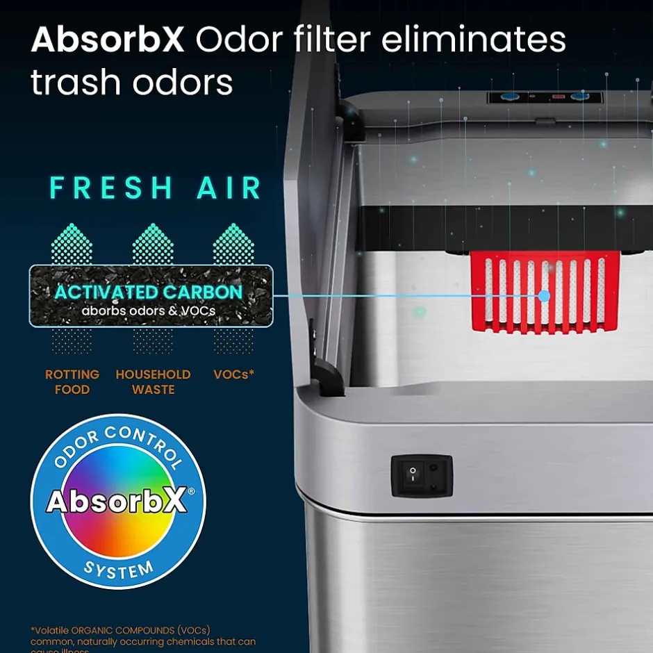 - Stop Trash Odors + Improve Air Quality – 1 AbsorbX Natural Activated Carbon Odor Filter is included to absorb and neutralize trash odors, for a healthier and fresh and clean smelling home.