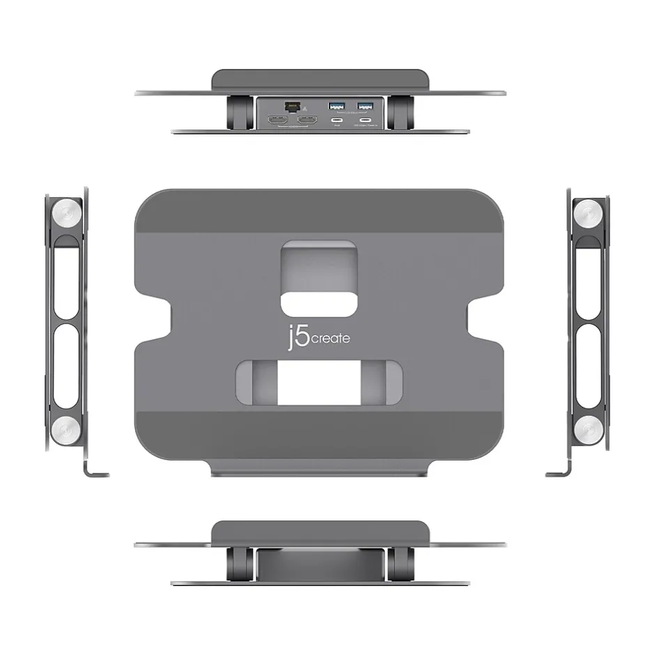 This j5create multi-angle stand is made of durable aluminum and can support a variety of items in addition to a laptop, including tablets, books, and more. Its foldable design allows for easy storage or transport, while the viewing angles and heights can be adjusted to fit your needs and optimize your viewing experience. This versatile stand gives you the ability to create a more efficient workspace, whether you need extra space or a standing desk setup. The integrated USB Type-C mini dock lets you easily create a workstation with one 4K HDMI or dual 1080p HDMI display outputs, a gigabit Ethernet port for easy network access, and two USB Type-A 5Gbps downstream ports, as well as a USB Type-C port that supports 5Gbps data transfer rate and up to 100W pass-through, providing all the connectivity you need for enhanced productivity and to connect your peripherals. The USB Type-C ports are equipped with Power Delivery 3.0/2.0 technology to charge your phones, tablets, or laptops at an extremely fast speed. This device is perfect for Apple MacBook (16″/15″ MacBook Pro), iPhone 11/11 Plus/XS/XS Max/XR/X/8/8 Plus, Nintendo Switch, Samsung S10e/S10/S10 Plus/Note10/Note10 Plus, and more. With the JVCU100 webcam, you can enhance your conference calls with live video and audio. The HD camera is plug-and-play, meaning there is no driver installation required. The JVCU100 supports 1080p video playback at 30Hz with H.264 streaming format.
