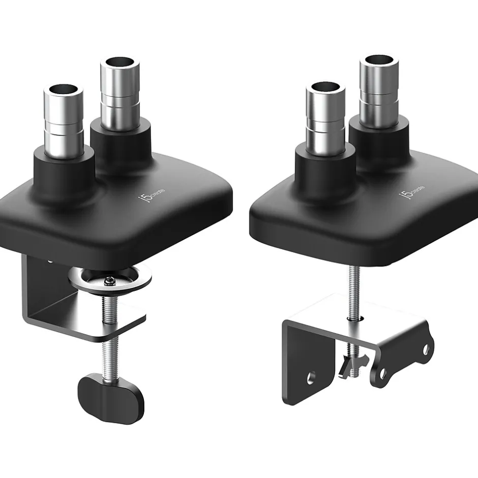 The j5create JTSA102 is a dual-arm gas spring monitor mount. Each of the arms can hold a screen up to 32″ weighing up to 17.6 lbs. Easily adjust your screens to any height. The gas springs allow the screens to swivel 180 degrees, tilt from -45 to 90 degrees, and rotate 360 degrees. Conveniently set your monitors at an optimal angle. This monitor mount gives you the ability to create a more efficient workspace, whether you need extra space or a standing desk setup.