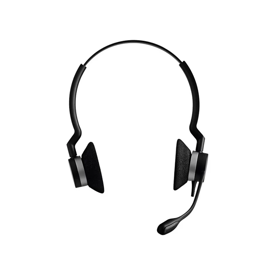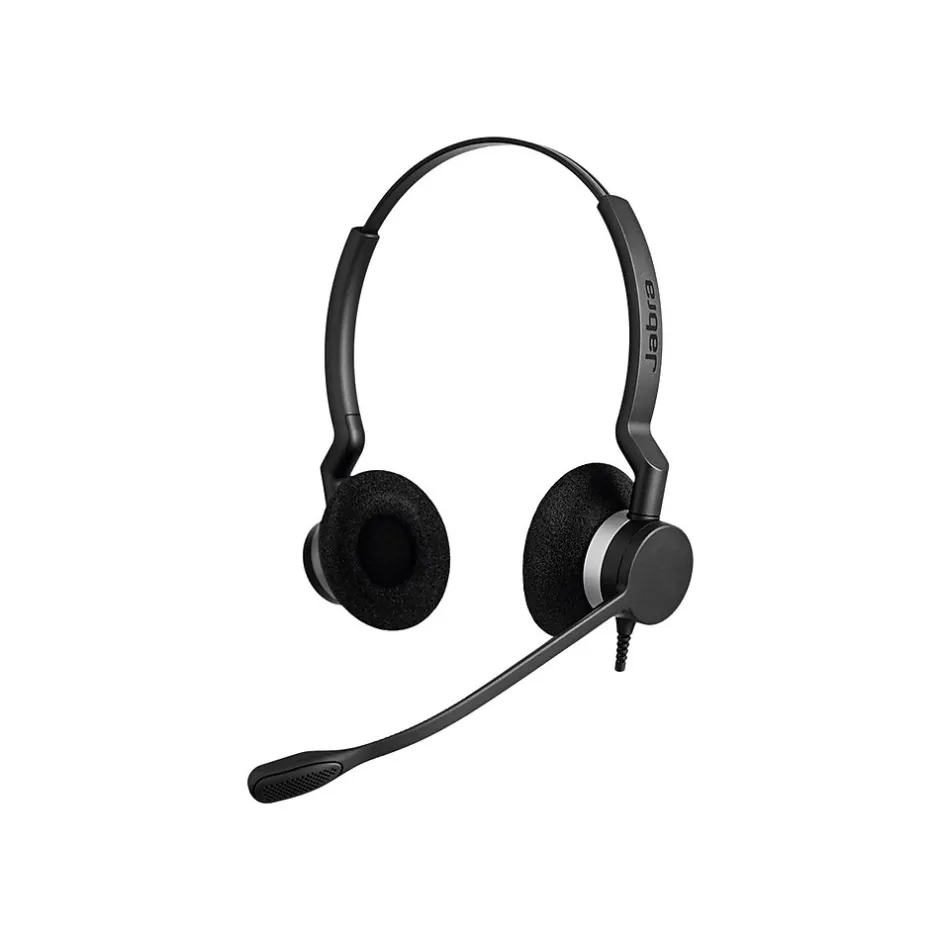 Boost at-work productivity with this corded USB headset. The microphone rotates 360 degrees for optimal voice clarity, and it delivers high-quality audio for crystal clear conversations. This jabra over-the-head headset has padded ear cups for extended comfort.