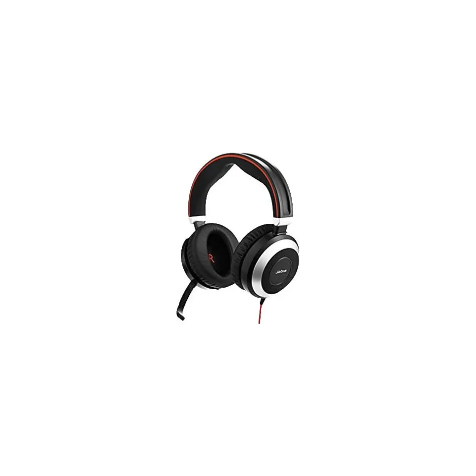 The Jabra Evolve 80 UC over-the-head stereo headset with noise-cancelling microphone, provides improved concentration and conversations. Connect this headset via USB or 3.5 mm jack for unlimited music. Charge your device using the provided USB cable. The leatherette ear cushions offer excellent noise cancelation that allows you to work with peace even in noisy or open environment. It provides unified communication for instant plug and play installation. The busy-light indicator signals user availability to colleagues. The busy-light indicator signals user availability to colleagues.