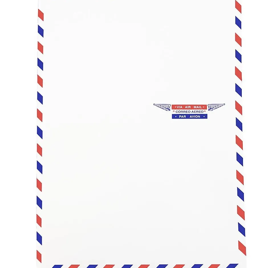 Looking for a unique and classing way to send full sized, unfolded documents or files through the mail? JAM PaperĀ® Airmail 9 x12 Open End Envelopes are what you need! These 9 x 12 inch envelopes are made out of durable 20lb paper and feature reliable gum closures to keep mailed items secure. Each one has a white base coloring with a red and blue slanted stripe border reminiscent of vintage stationery. Near the right middle on the front of each one, there is a blue, white, and red emblem with blue outlined wings on either side. This emblem reads “Via Air Mail” in English, French, and Spanish. This pack includes a convenient total of 25envelopes!