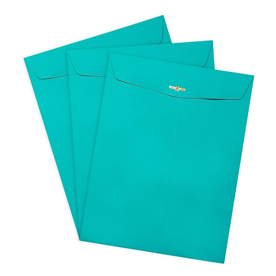 JAM PaperĀ® Sea Blue 9 x 12 Open End Catalog with Clasp Closure Envelopes are made out of high quality, smooth, 30% recycled, 24lb paper. This pack contains 10 envelopes. At 9 x 12 inches in size, these envelopes are perfect for enclosing standard sized sheets of paper without folding or creating creases! Each one features a bright shade of sea blue! To keep the contents placed inside secure while in transport, these envelopes have commercial style flaps and reliable, easy-to-use metal clasp closure. Each one also has an optional-use gum closure for additional reinforcement.Use these blue envelopes to mail letters, promotional materials, and more!