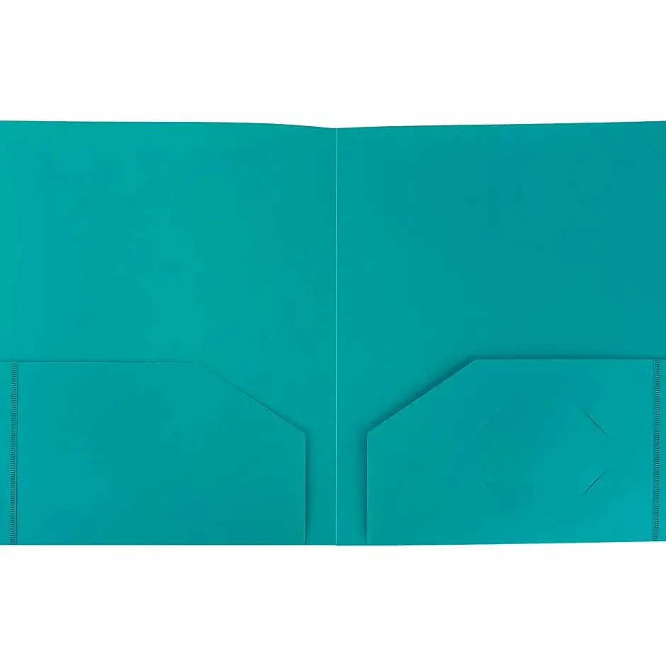 Looking to bring some color to your office? Could you use some extra recourses to keep documents organized and safe as well? JAM PaperĀ® Teal Blue Heavy Duty Plastic Two Pocket Presentation Folders measure 9 x 12 inches in size and contain two pockets on the inside. Each right-side pocket features a convenient business card slot for displaying your business and professional information with ease. These folders are made out of notably durable, heavy duty plastic and will guard your important documents against dust, dirt, and damage. The inviting teal color of these folders is sure to add a bright and welcome accent to your work space. This pack includes 6 folders!