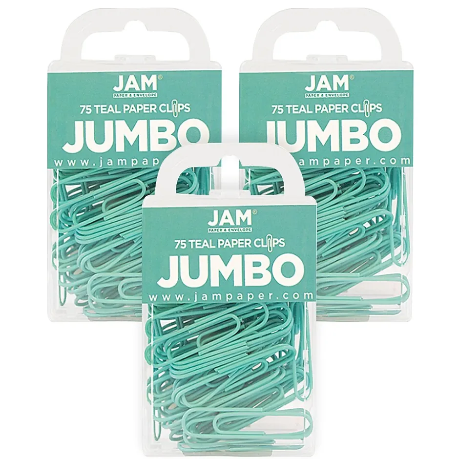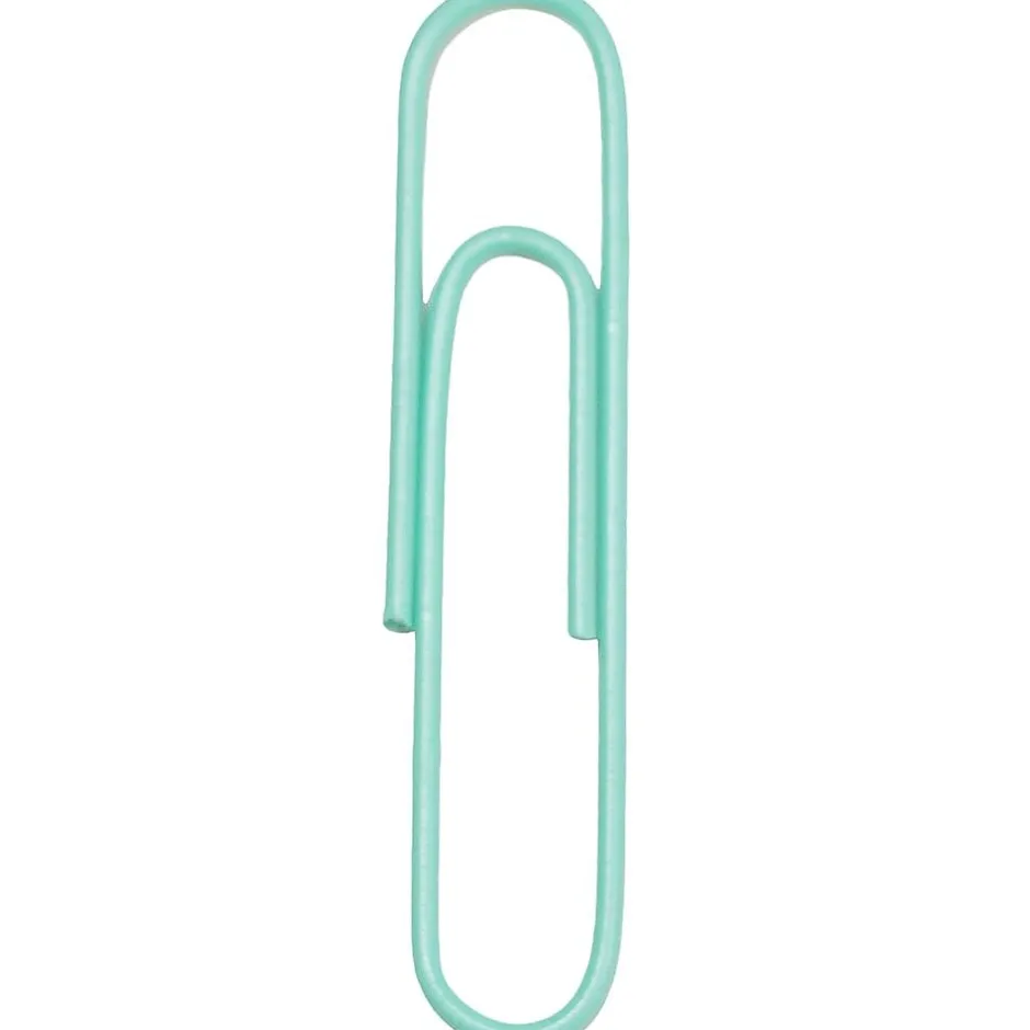 Teal Colored Jumbo Paper Clips are made from sturdy vinyl coated steel wire. This box contains a total of 75 paperclips. Each one is 2 inches long, making them great for securing heftier projects and stacks of documents. The bright teal color of these paperclips causes them to stand out in any office, locker, desk pile, or work space! Use them to bring a hint of color and self-expression to your ordinary work or school day! These fun and functional paperclips are ideal for clipping together paper, craft projects, attaching extra memos to files or folders, keeping checks and receipts together, and more!