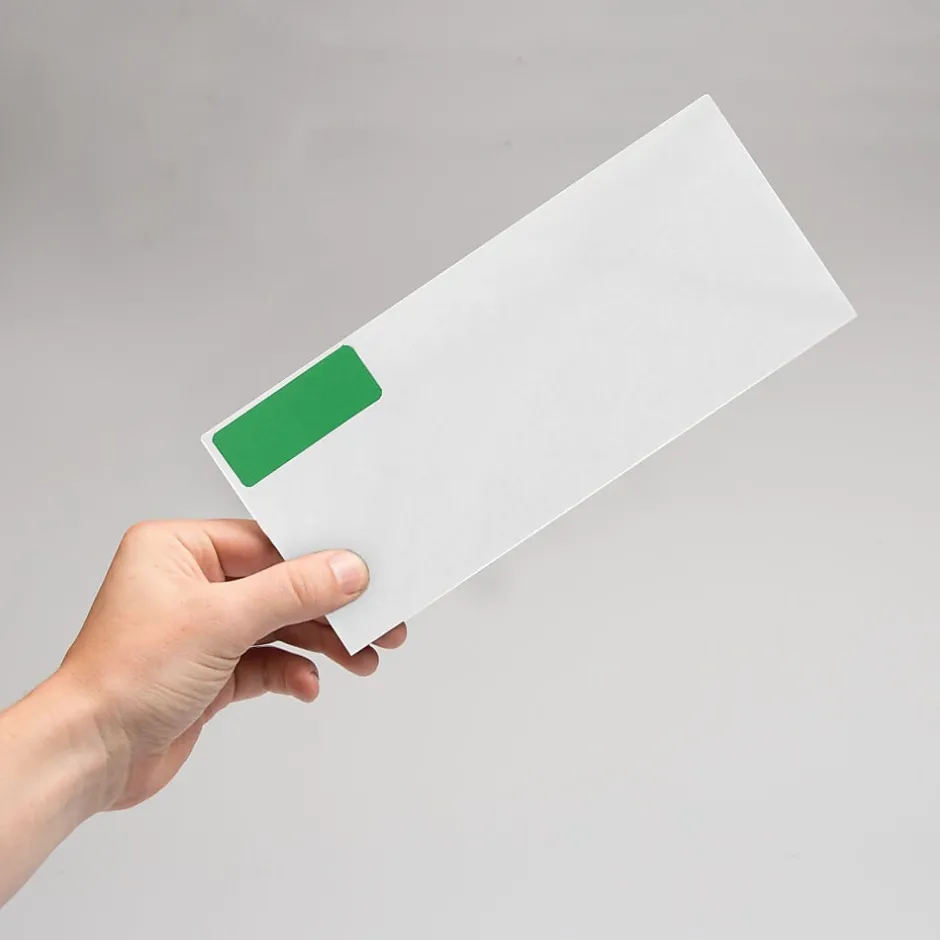 - Rectangular green labels for mailing purpose