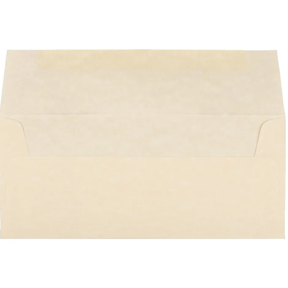 JAM PaperĀ® Parchment Natural Recycled #10 Business Envelopes measure 4 1/8 x 9 1/2 inches in size, which makes them ideal for enclosing standard sized sheets of paper that have been folded into thirds. These envelopes are made out of smooth, high quality, 30% recycled, 24lb paper. Each one features a light brown, natural parchment color. This pack contains an even total of 50 envelopes. To keep the contents placed within these envelopes secure as they make their way through the mail, each one features a straight flap opening and a reliable gum closure. Use these natural colored business envelopes for home, office, and special occasion mailing purposes.