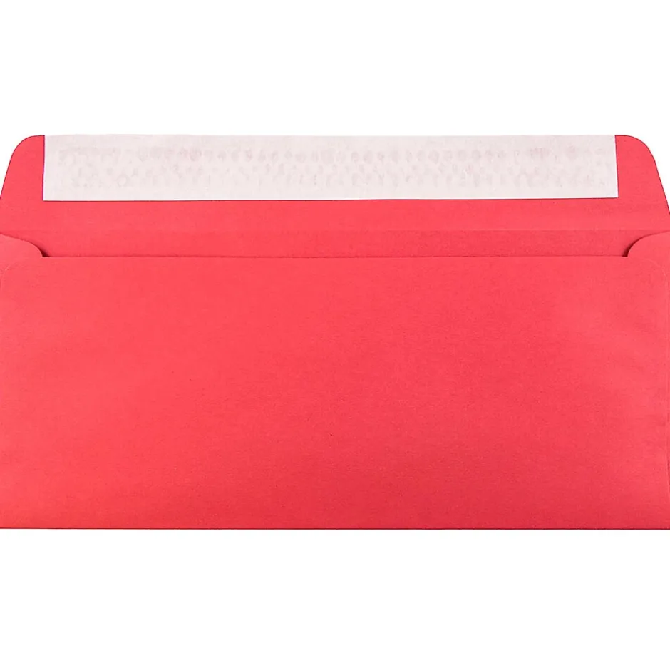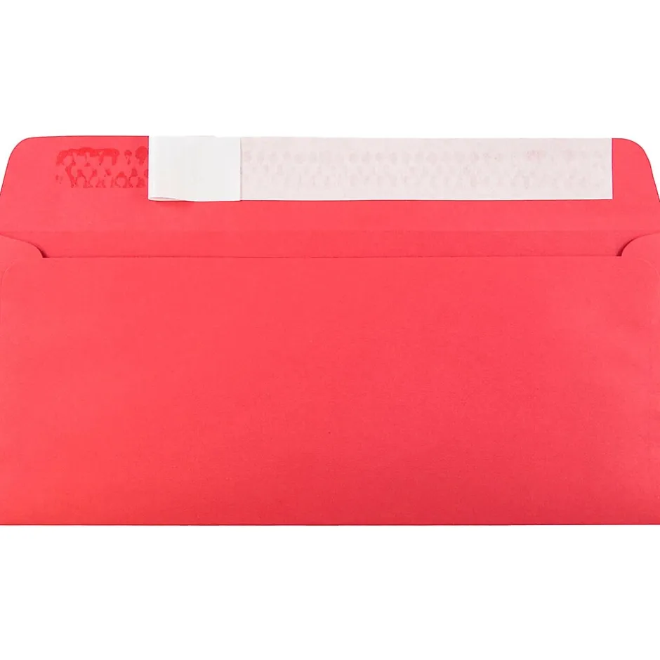JAM PaperĀ® Peel & Seal 4 1/8″ x 9 1/2″ brite hue Christmas red recycled paper envelope in a pack of 25 comes in over 20 sizes and has a square gummed flap. Envelope with 65 lbs cardstock has an approximate weight of 4.8 oz.