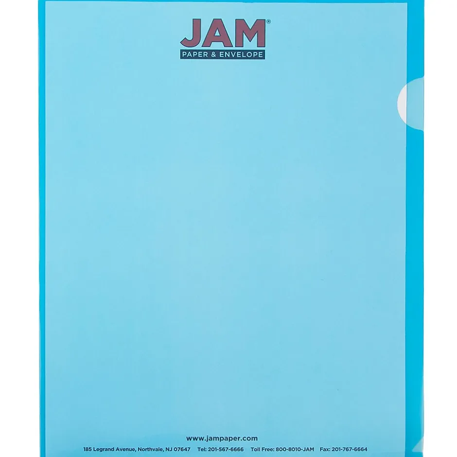 JAM Paper® Blue Plastic Sleeves are great for keeping notes, itineraries, order slips, menus, scripts, instructional sheets, and other important papers safe from dirt and damage! These sleeves measure 9 x 11.5 inches in size and are made out our pliable, blue, transparent plastic. These sleeves are sealed closed along the left edge and along the bottom. The top and right edge are open so that you may slide documents in and out with ease. Near the top on the right side, there is a rounded indent that allows you to more easily lift the cover to fit documents inside. This pack includes a total of 120 sleeves. Their blue color can help stored documents stand out and allow you to color categorize your documents.