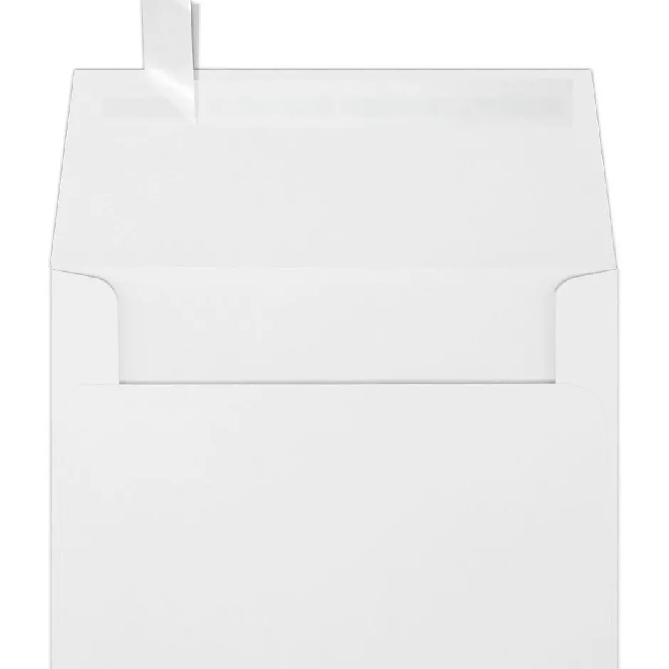 Are you looking for a high-quality A6 envelope for invitations, announcements, greeting cards, and more? These envelopes are also perfect for any occasion from playful to formal. The modern square back flap adds a sophisticated touch to this envelope. Best of all, it features a peel-and-press sealing method! Simply remove the adhesive strip on the inside of the back flap and press down to seal your envelopes. You’ll get a great seal every time, no moistening required. The 80 lb.. text-weight envelopes are an excellent choice because they’re about twice as thick as regular printer paper. This sturdy and durable thickness is perfect for shipping long distances without bending or tearing. When printed on, LUX envelopes are complemented with a wide variety of ink colors. You won’t have to worry about paper jams, tears, or ink smears with these envelopes. They’re designed for compatibility with laser and inkjet home printers. These envelopes are also ideal for addressing notes and invitations by hand. Whether you use a gel pen or calligraphy pens, you’ll be impressed with the high-quality, smudge-proof paper. These A6 invitation envelopes measure 4 3/4″ x 6 1/2″ (121mm x 165mm). They can also fit inside of larger-sized envelopes or paper inside, including A7, A8, A9, and A10. If you’re in charge of envelopes for a wedding, party, holiday, corporate gathering, banquet, shower, birthday, or graduation, LUX 80 lb.. White w/ Peel & Press envelopes are a durable and high-quality option for all your party-planning needs. Purchase a package of 50, 250, 500, or 1000 today!