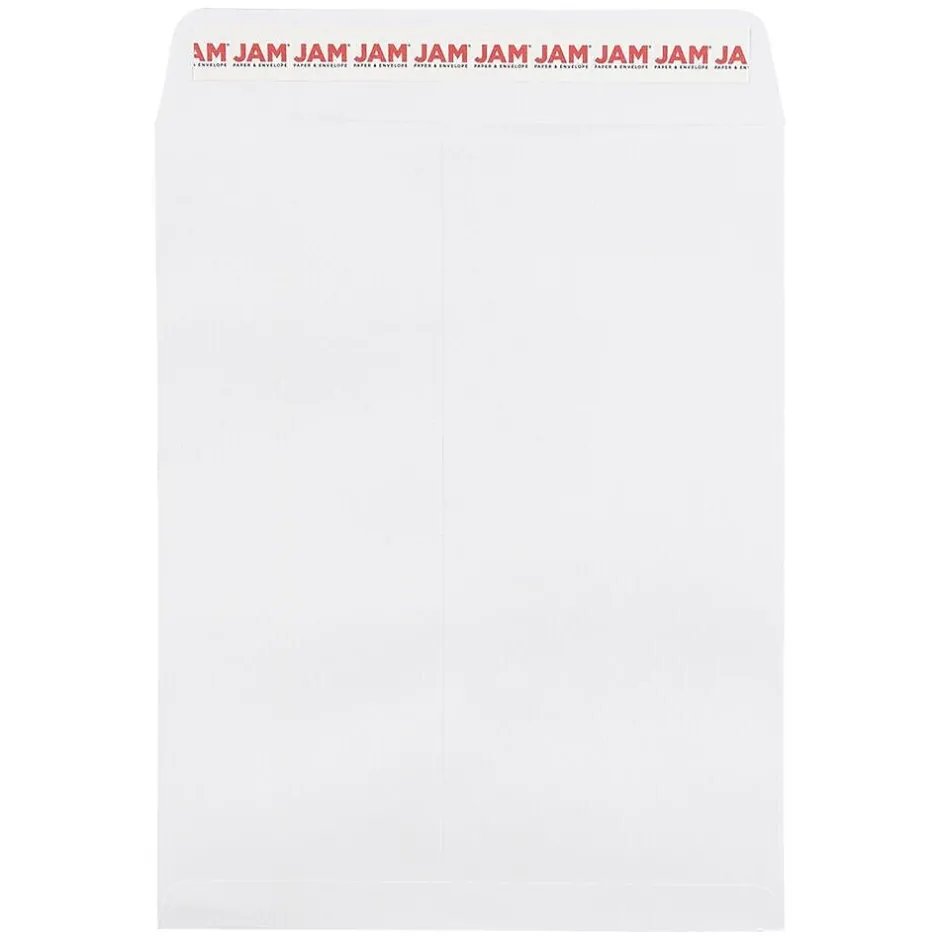 Keeping your mail safe and stylish is simple with JAM Paper Peel & Seal Envelopes. Use these white envelopes to send a variety of mail while saving time, as they feature a peel and seal closure that allows you to quickly get to the post office and have your mail on the way to recipients. Simply pull off the strip and pat down to secure invitations, announcements, greetings, important documents, files, presentations, contracts, and more! Appropriate for both home and office use. This pack includes 100 white envelopes made from 28 lb. paper measuring 8 3/4″ x 11 3/4″. Each envelope has an open end opening, wallet flap, self adhesive strip closure, and smooth finish.Size: 8.75in x 11.75in | Color: White | Quantity: 100/pack