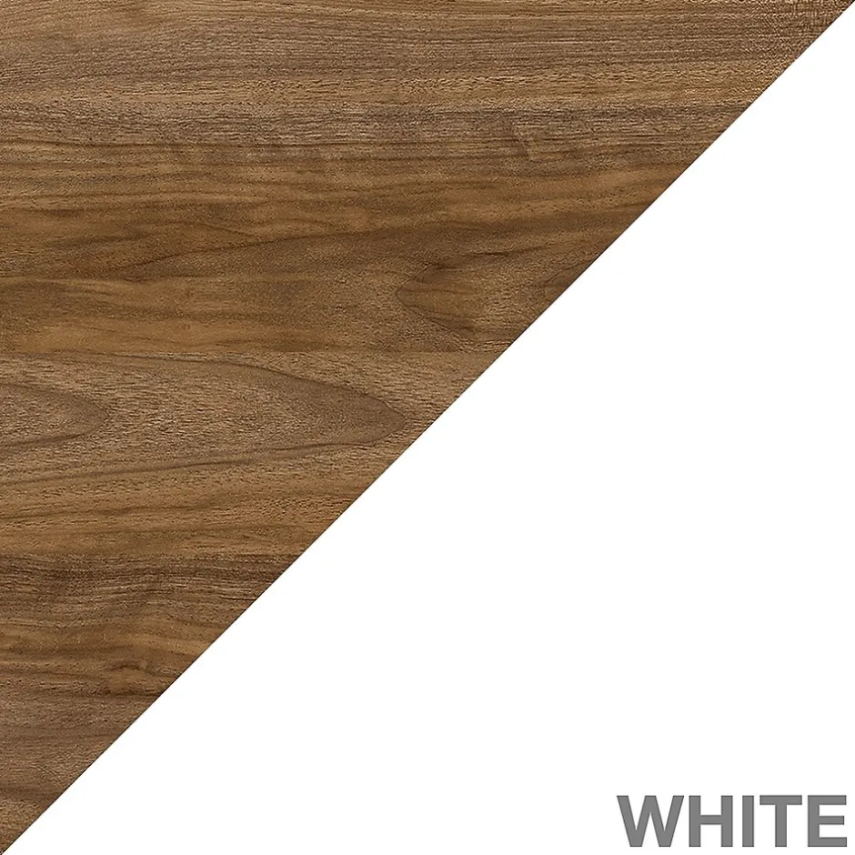 - Made of thermally fused laminate over composite wood in a fresh walnut/white finish