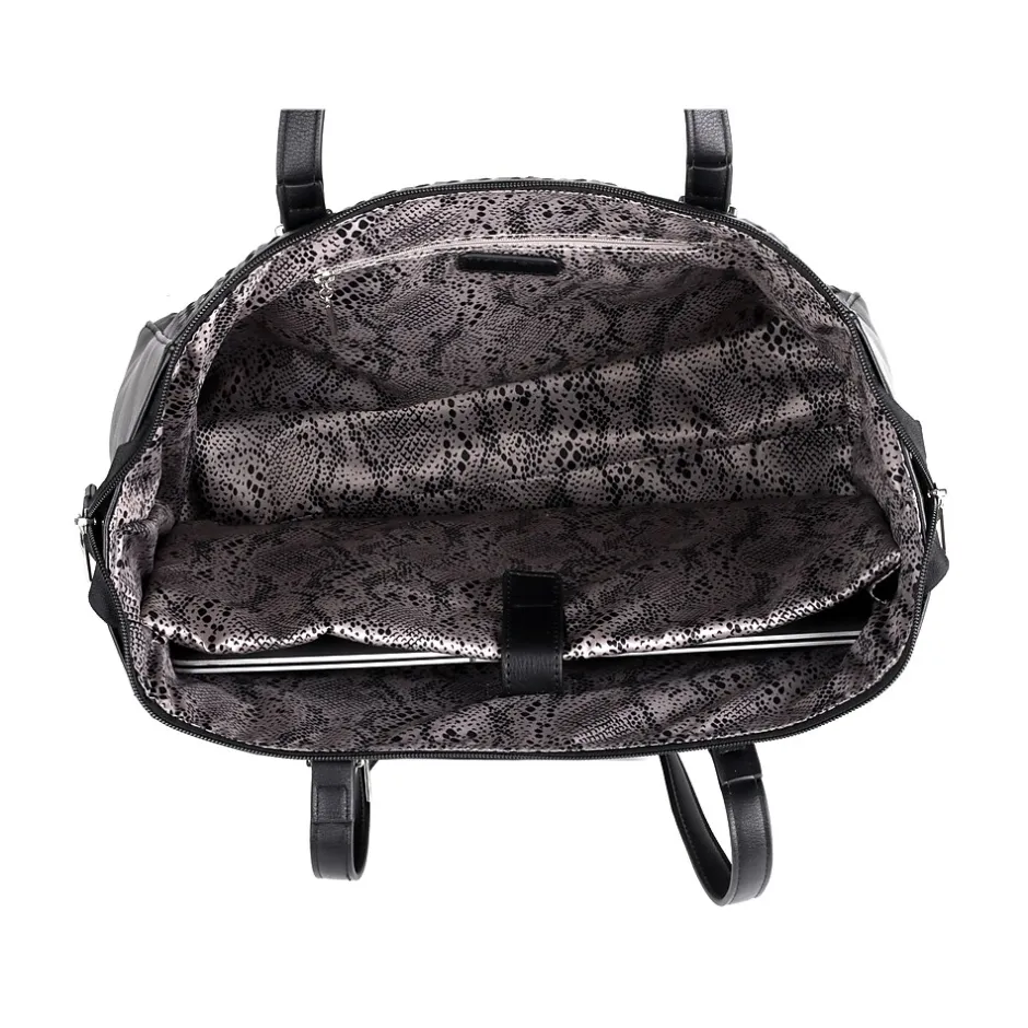 The Karla Hanson Tanya tote bag is chic and practical in equal measure, featuring a versatile, roomy design. Made of smooth vegan leather with soft and durable handles, the Karla Hanson Tanya tote bag can be carried in any way, including on the shoulder, on the elbow, and in the hand. The woven design adds texture and flair effortlessly. It is a must-have accessory for easy everyday elegance. Features an RFID-protection pocket that protects your identity and credit cards. With a zipper closure, the roomy pocket can hold your wallet, cell phone, passport, travel documents, and more.