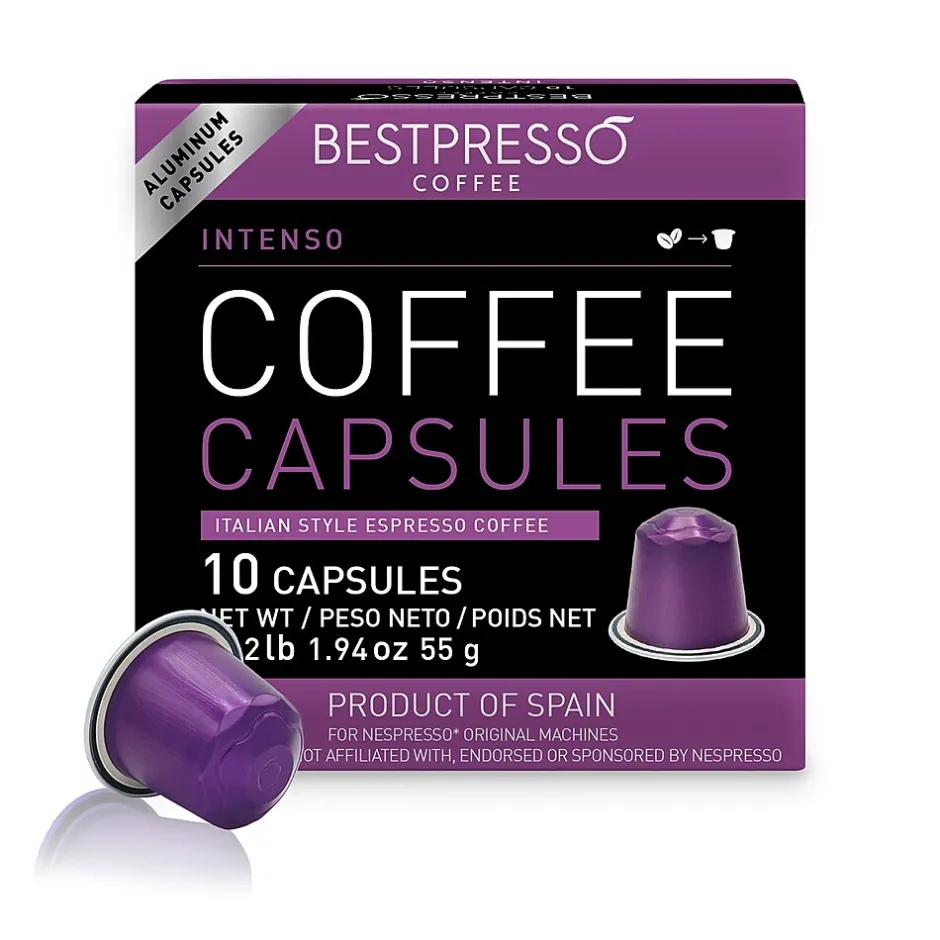 Enjoy the pure, distinctive flavor plus creamy body of Italian espresso with the extra bold intensity Bestpresso? Intenso Gourmet Coffee Capsules. Compatible with all original line Nespresso espresso machines.