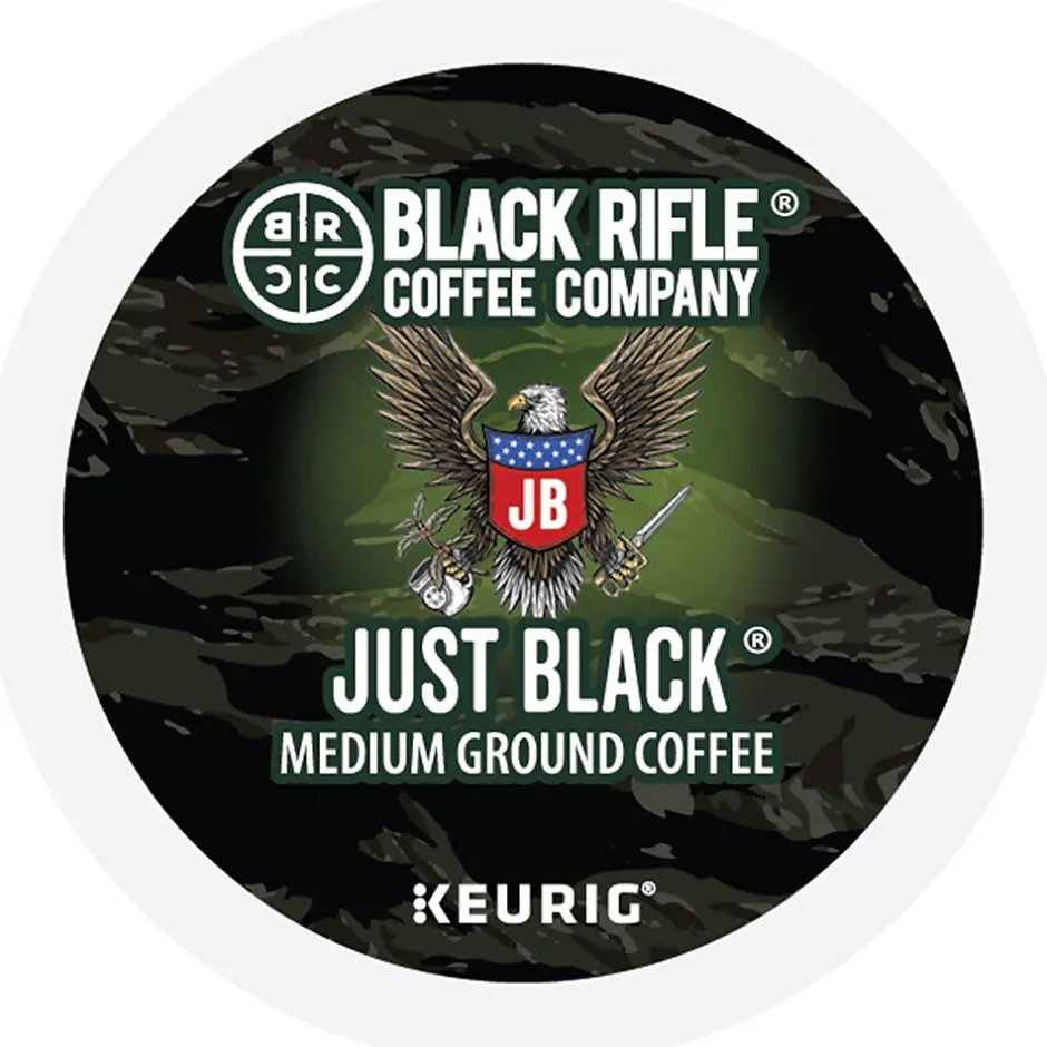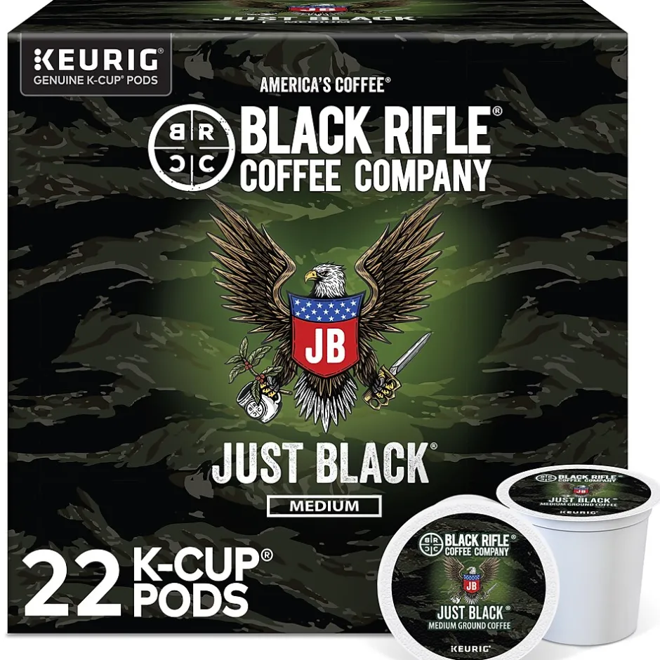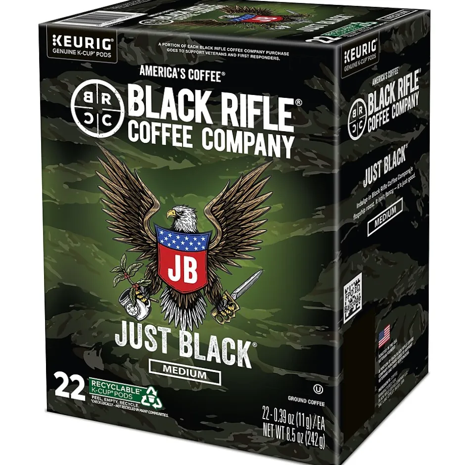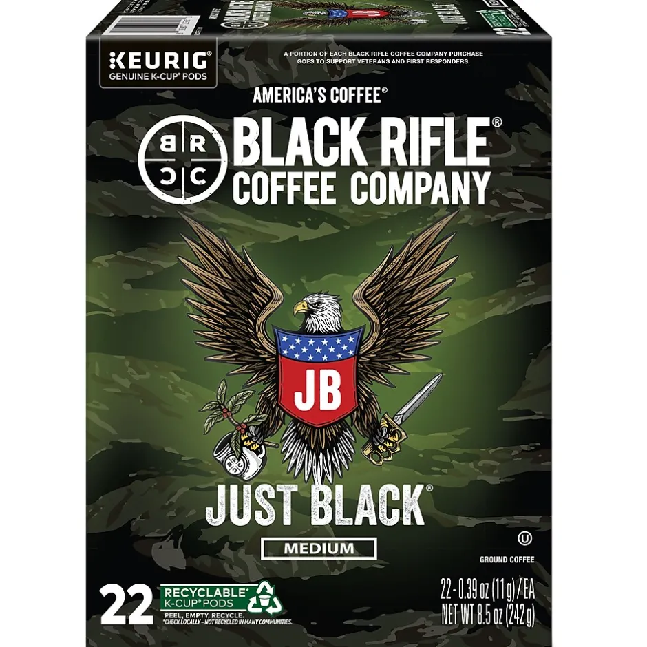 The coffee that started it all. There’s dark, light, and there’s just right. Just Black is our flagship coffee, a medium roast that strikes the perfect balance between the bold and the smooth. It features an aroma that’s a mixture of cocoa and vanilla, bold tasting notes, and a smooth, buttery finish that brings it all home. It’s not easy finding the perfect beans to represent Black Rifle Coffee Company. We have scoured through the coffee powerhouses of the world to find high-quality coffee beans to deliver a full-flavored taste no matter how you take your coffee. So every one of our Just Black K-Cup® pods gives you the perfect cup, every cup. Black Rifle Coffee Company serves coffee and culture to people who love America. We develop our explosive roast profiles with the same mission focus we learned as military members serving this great country, and we are committed to supporting veterans, law enforcement, and first responders. Each Just Black K-Cup® pod is filled with freshly ground coffee beans and is compatible with all Keurig® single serve coffee makers. Simple. Delicious. And recyclable. Enjoy the same great-tasting coffee you know and love, and when you’re done, just peel, empty, and recycle. Check locally, not recycled in many communities.