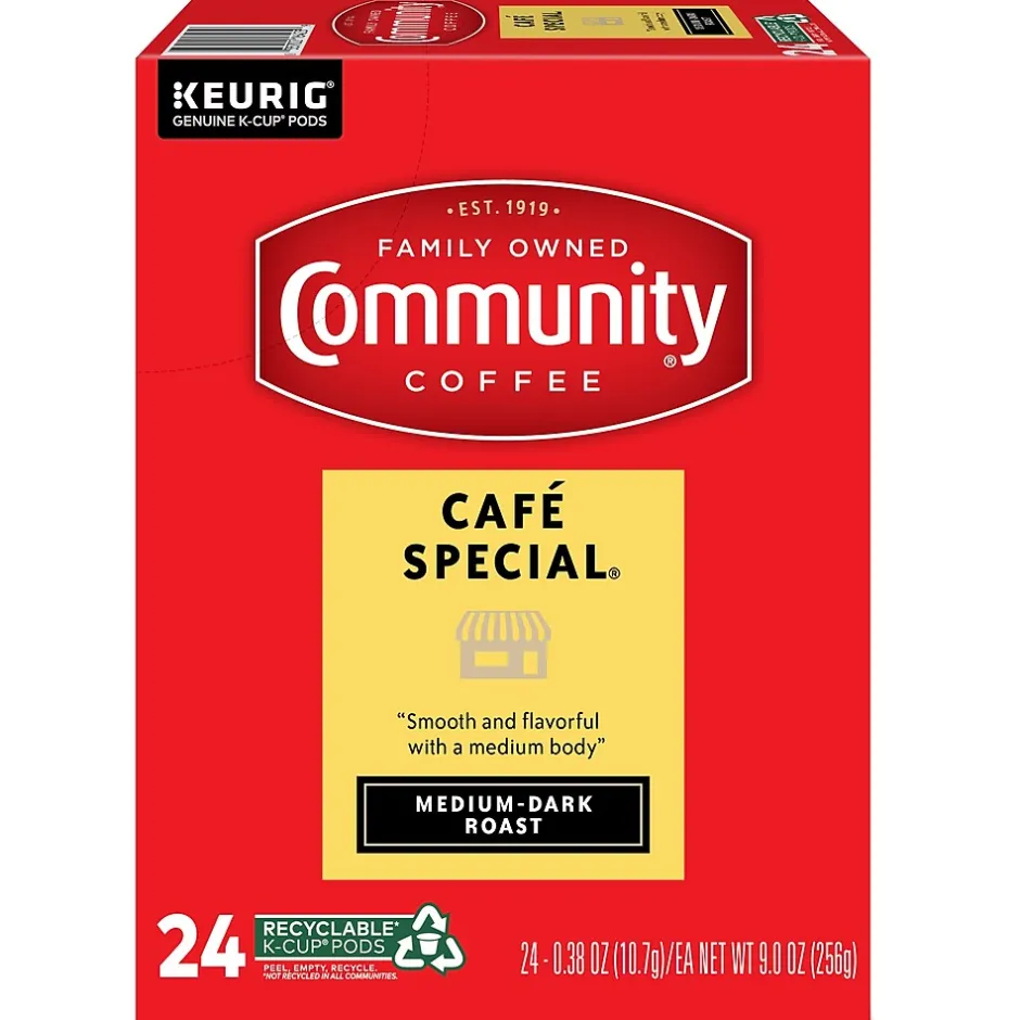 The Community Coffee Cafe Special blend is designed to highlight coffee beans known for their sweeter profile. After harvesting, the coffee is allowed to dry naturally in the sun, locking in flavor unique to the South and Central America. At Community Coffee, they roast this coffee to a medium-dark color to bring out notes of caramel and cocoa, giving you the taste of your favorite cafe right at home.