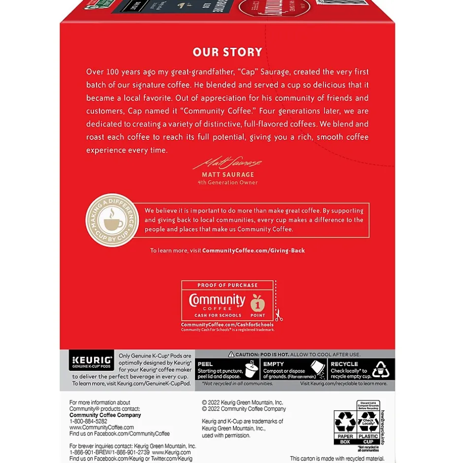 Over four generations ago, the Community Coffee founder “Cap” Saurage created the signature dark roast coffee. This special blend is roasted dark to develop a rich, smooth flavor with a deep chocolate profile. The Community Coffee master roasters ensure the exact roast level is achieved to consistently create this deliciously complex coffee that remains a favorite today.
