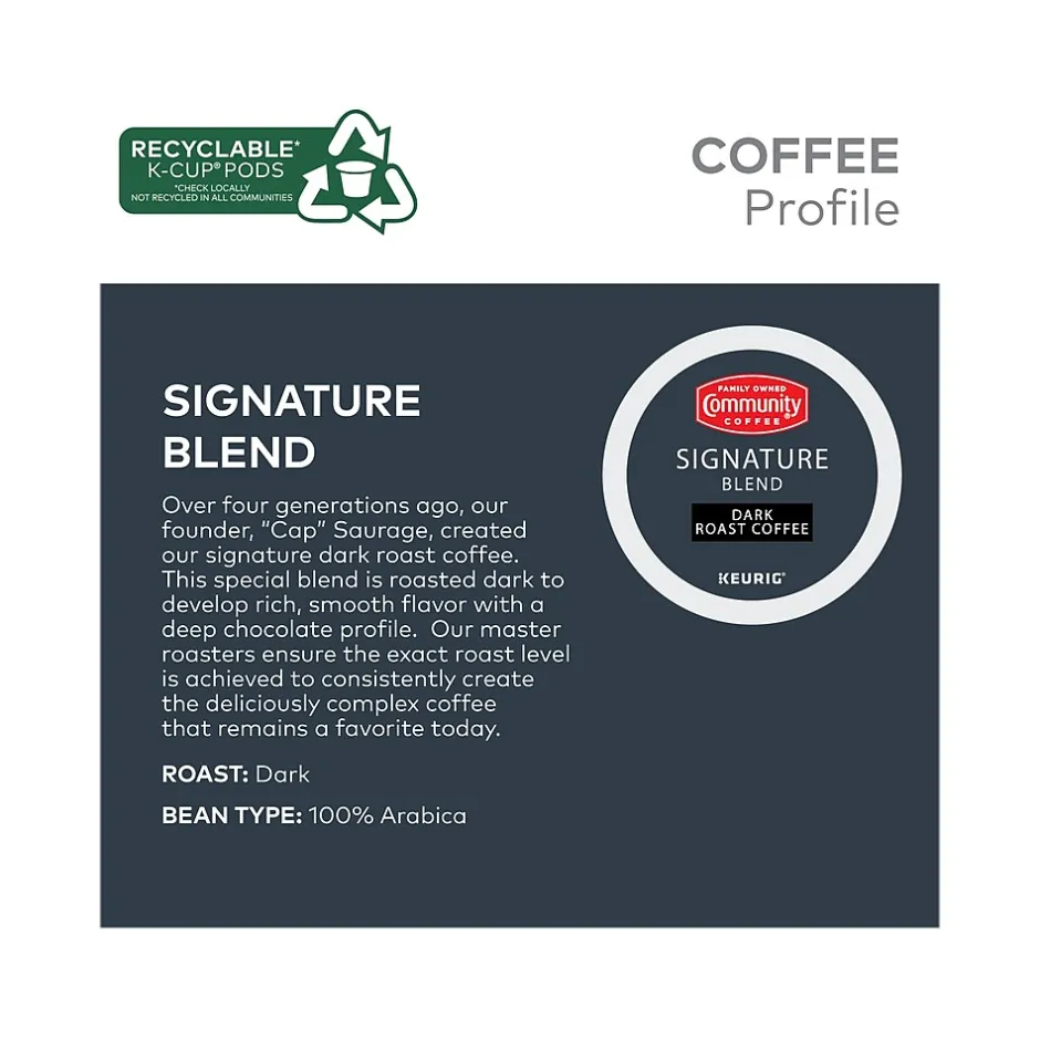 Over four generations ago, the Community Coffee founder Cap Saurage created this signature dark roast coffee. This Signature Blend is roasted dark to develop a rich, smooth flavor with a deep chocolate profile. The Community Coffee master roasters ensure the exact roast level is achieved to consistently create this deliciously complex coffee that remains a favorite today.
