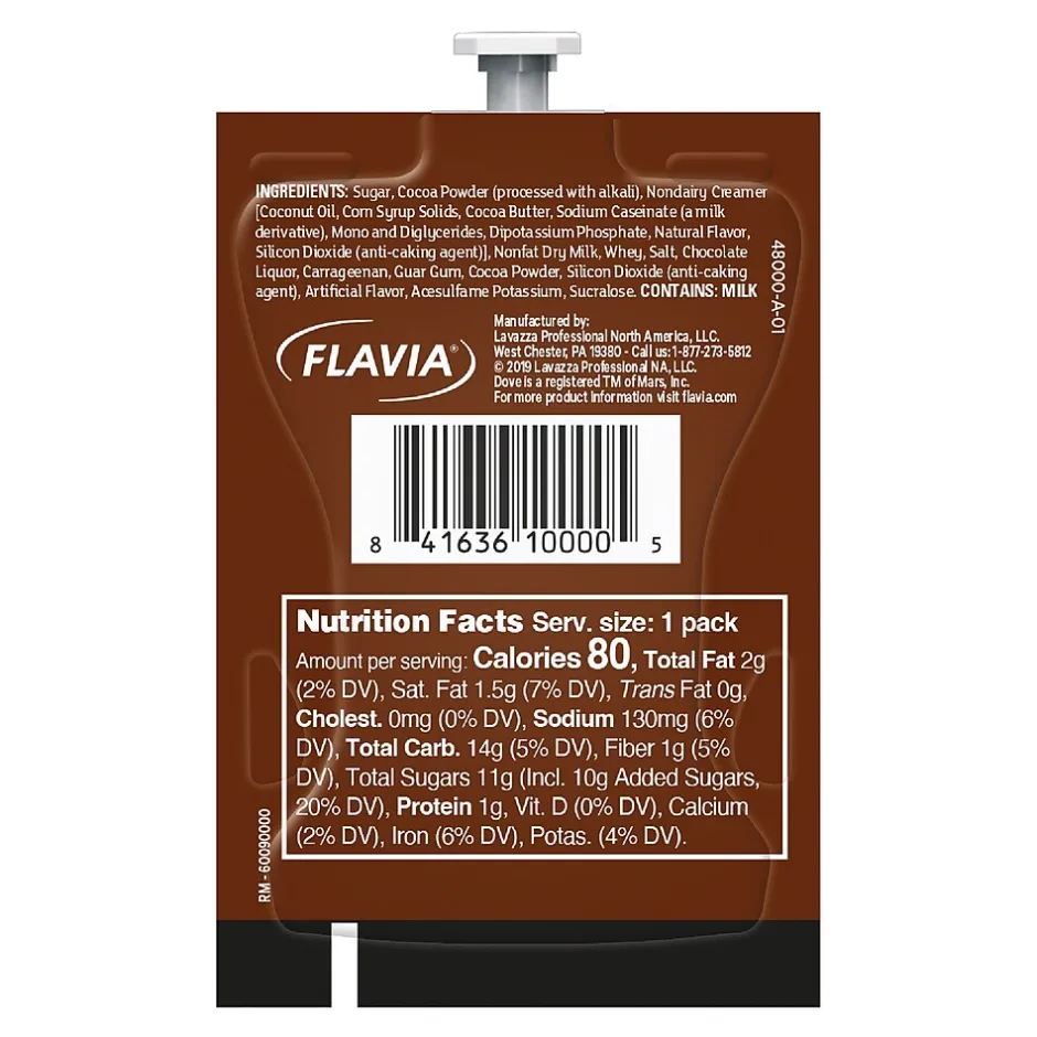 Satisfy your craving for hot chocolate with this silky smooth milk chocolate drink. The premium cocoa and milk create a tasty flavor for guests, while the 72-count package makes it simple to stay fully stocked. This Dove hot chocolate drink is compatible with FLAVIA® brewers, making it a good choice for break rooms and office kitchens.