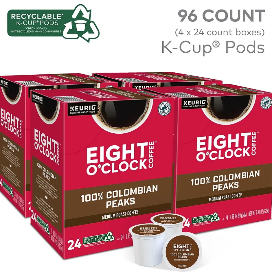 Cultivated exclusively at a high altitude in Colombia’s rich volcanic soils, the Eight O’Clock beans are harvested at their optimum ripeness to create the Eight O’Clock 100% Colombian Peaks blend. This Eight O’Clock gourmet roast has a distinct flavor with a sweet finish. Arabica beans from Colombia are rich and full-bodied, so it’s easy to understand why they are so popular. This unique blend has an outstandingly smooth yet full-bodied taste with a complex finish. Compatible with any Keurig K-Cup pod single-serve coffee maker: just pop the pod in and enjoy delicious fresh-brewed coffee, with just the single touch of a button.